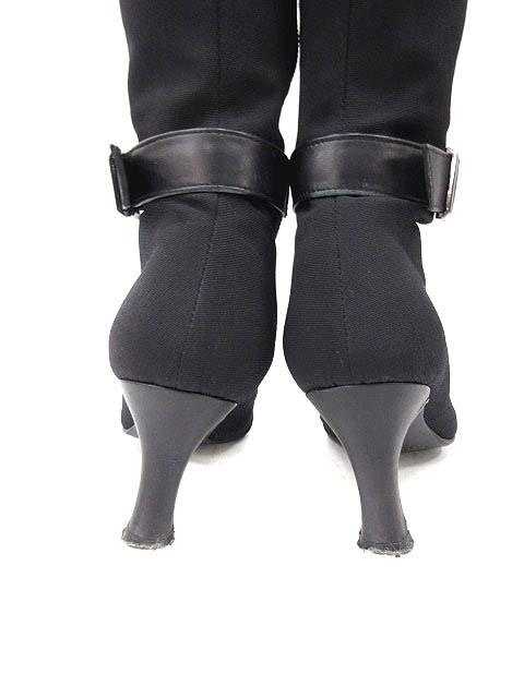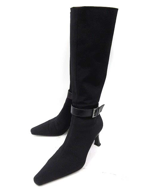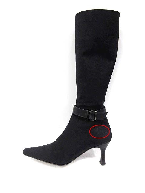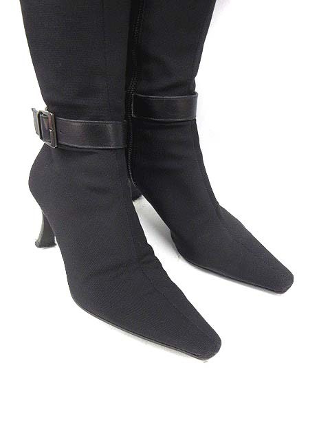 ダイアナ DIANA ブーツ ロング ローヒール ベルト ジョッキー キャンバス 21 黒 /SN41 レディース【ベクトル 古着】