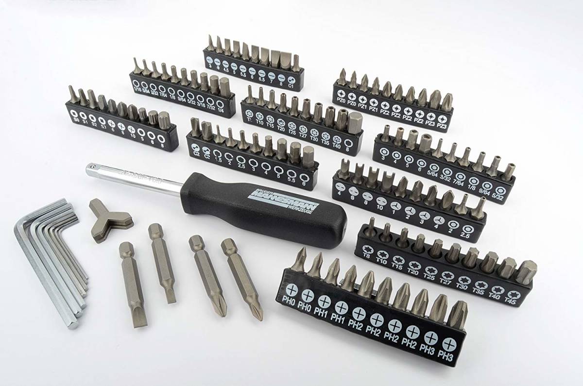 ドイツの工具メーカーBruder Mannesmann(ブルーダー・マンネスマン) の、1/4インチラチェットハンドルとソケット・ビットの130ピースセット。