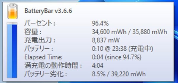 取り外し前に満充電とバッテリー診断ソフトにて動作の診断をして問題ないことを確認しています 診断ソフトによるとバッテリーの劣化は8.5%となっておりますので90%以上の状態です |