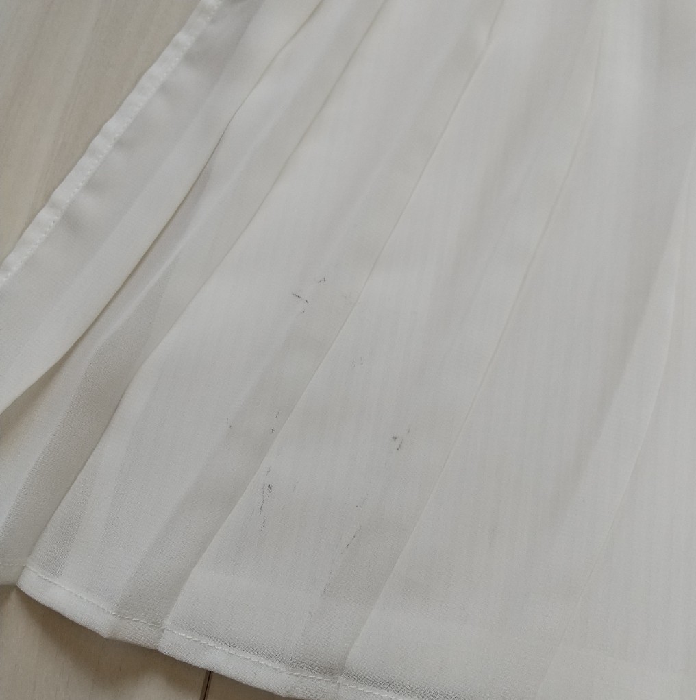 プリーツ部分の裾に細かい黒い汚れがあります(最後のお写真参照)。