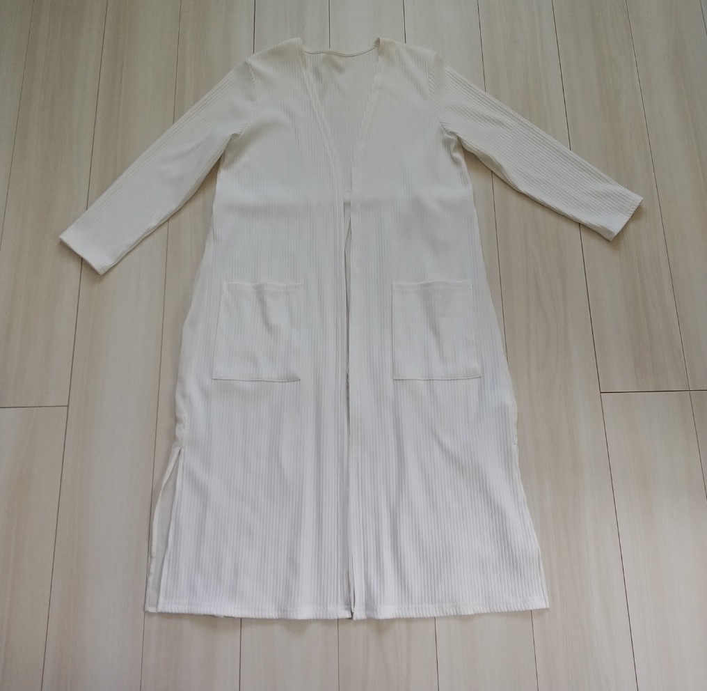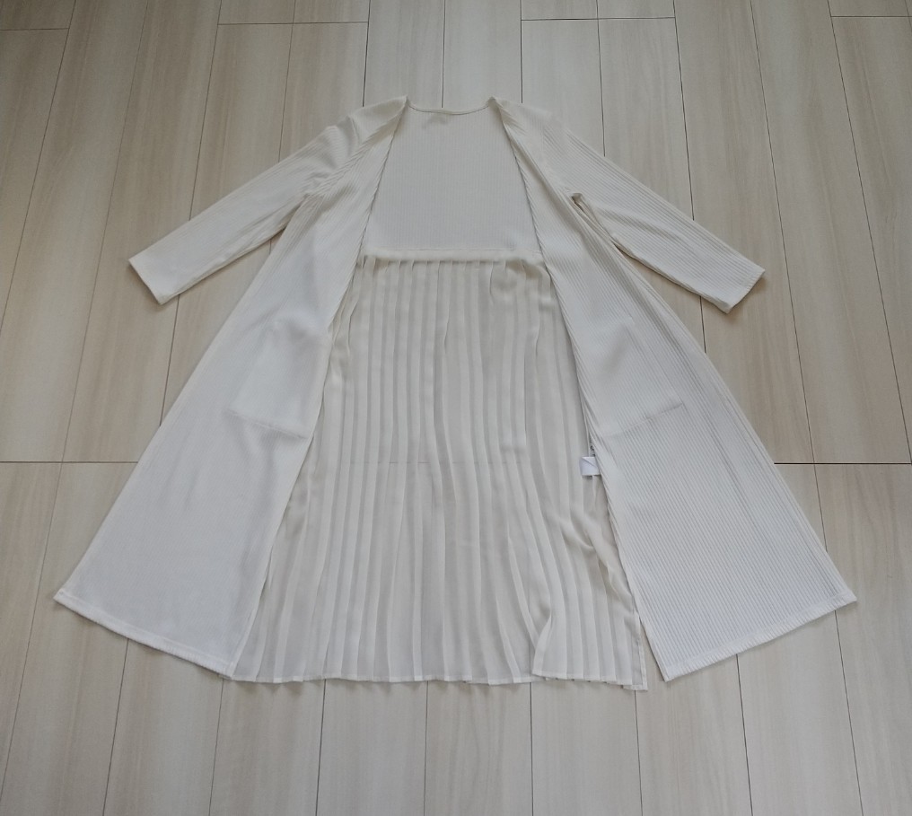 バックプリーツシフォン ホワイト ロングカーディガンです。