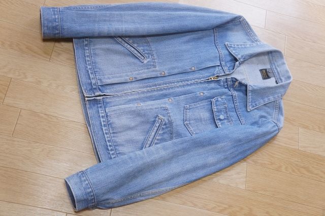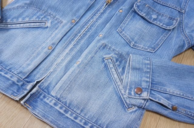 多少のスレ・色落ちのあるユーズド加工の品、 良い雰囲気に仕上がっています。
