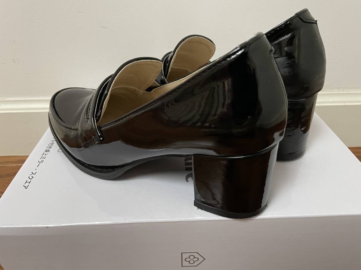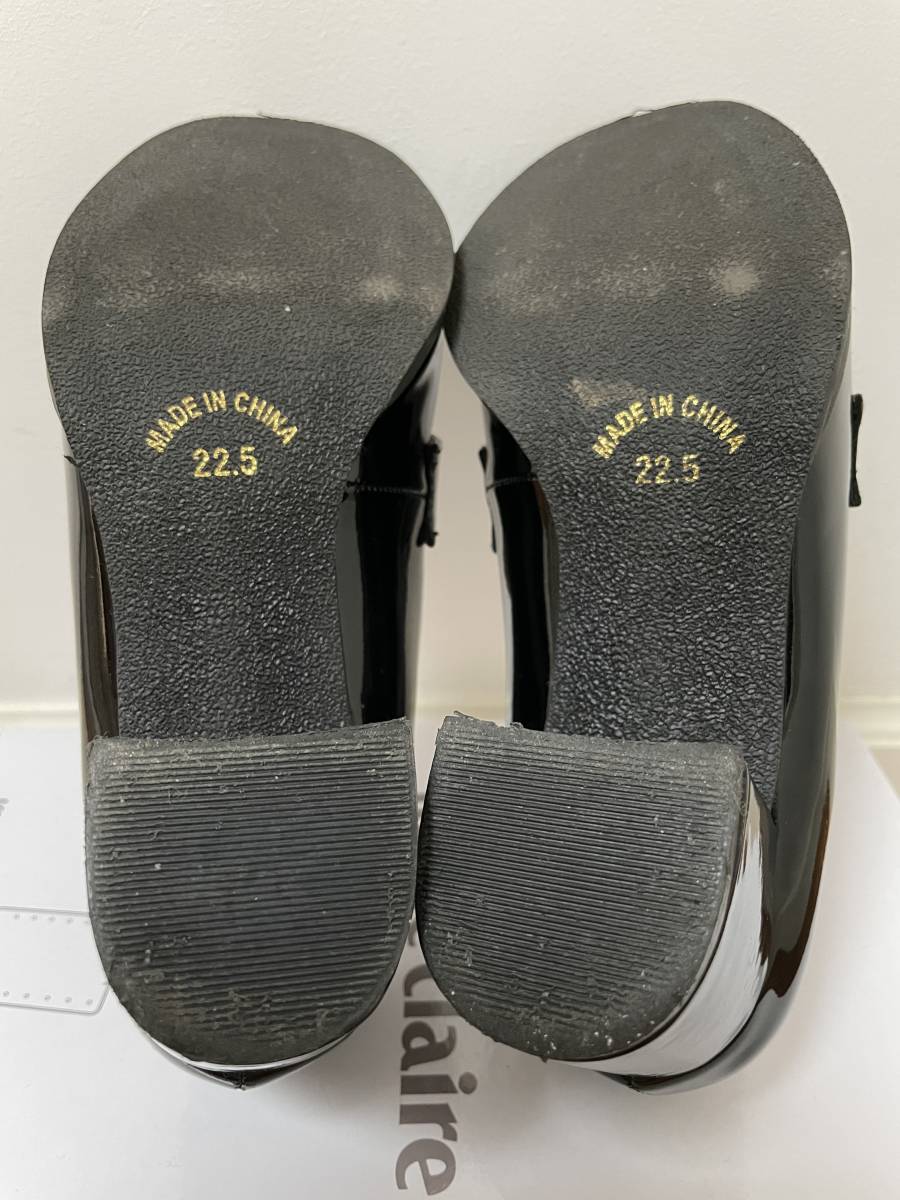 ■earth music&ecology アース ローファー風エナメルパンプス(黒、22.5cm)