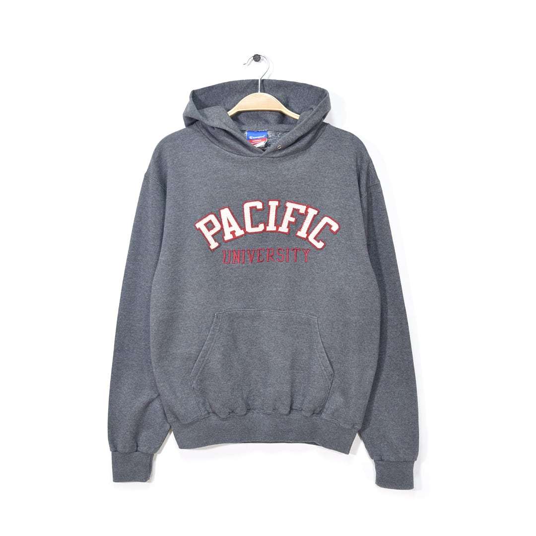 【送料無料】 チャンピオン パシフィック大学 スウェットパーカ ダークグレー PACIFIC UNIVERSITY メンズS CHAMPION アメカジ 古着 @CG0340