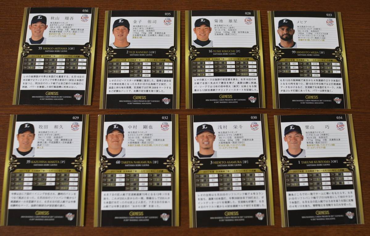 SAITAMA SEIBU LIONS プロ野球 2017年 中村・秋山・金子など  トレーディングカード 8枚セット