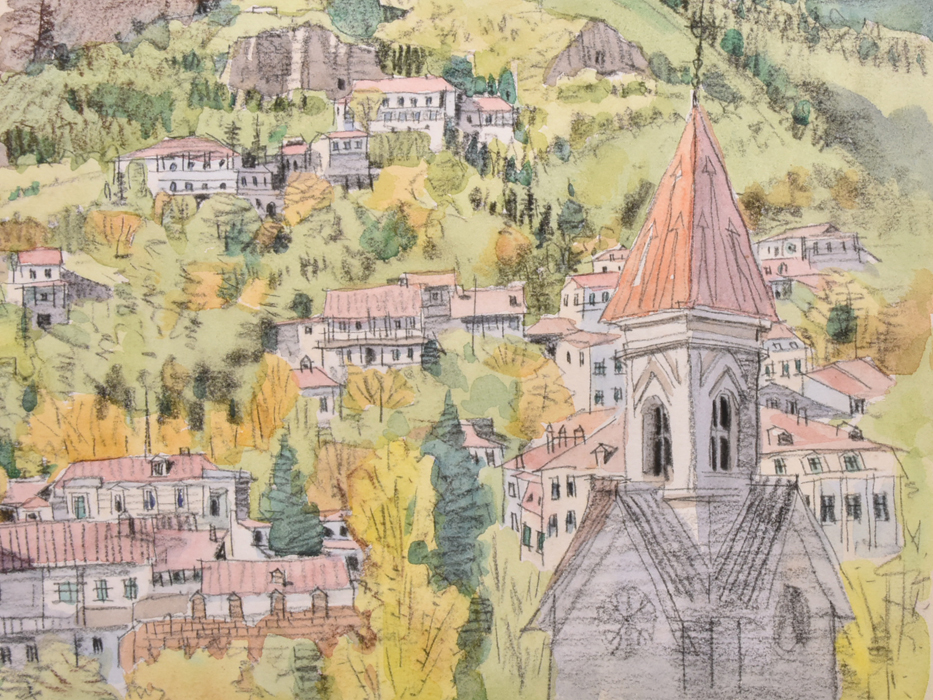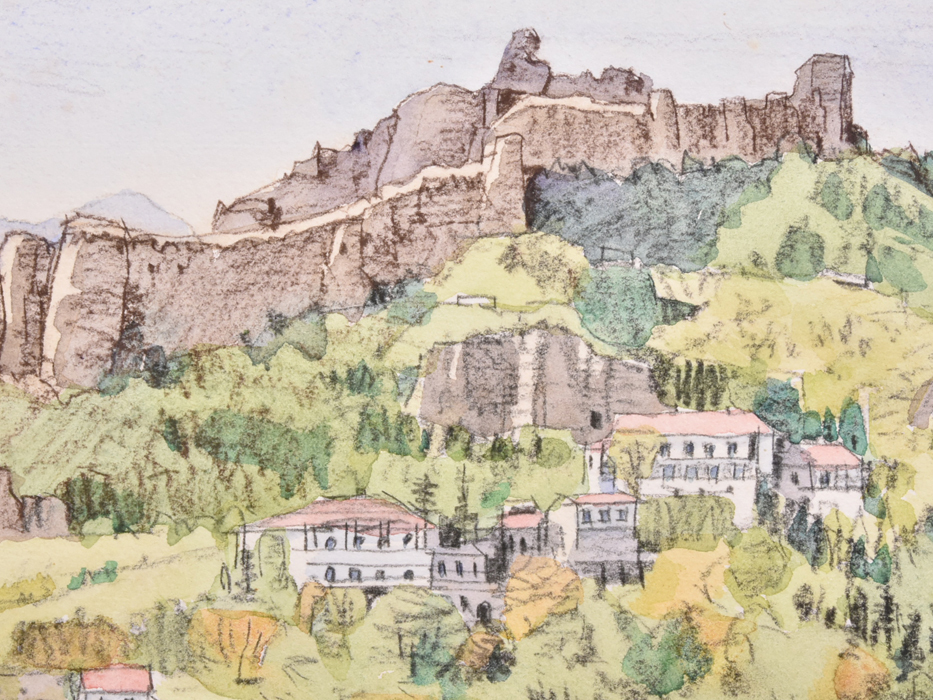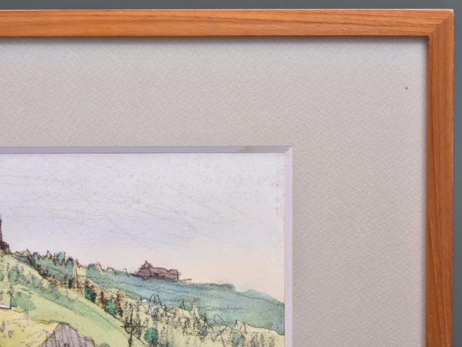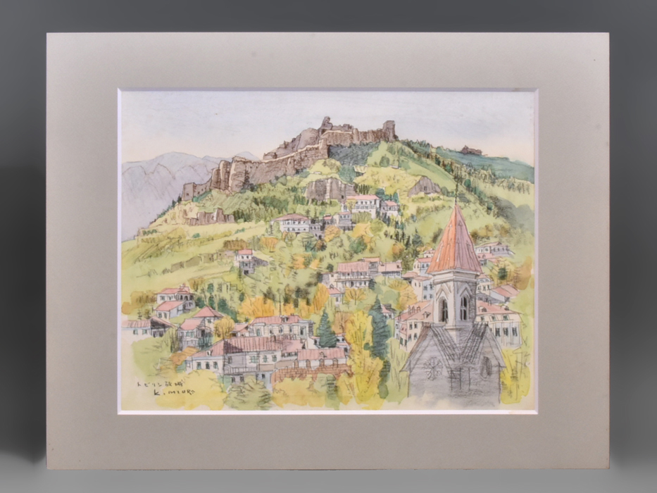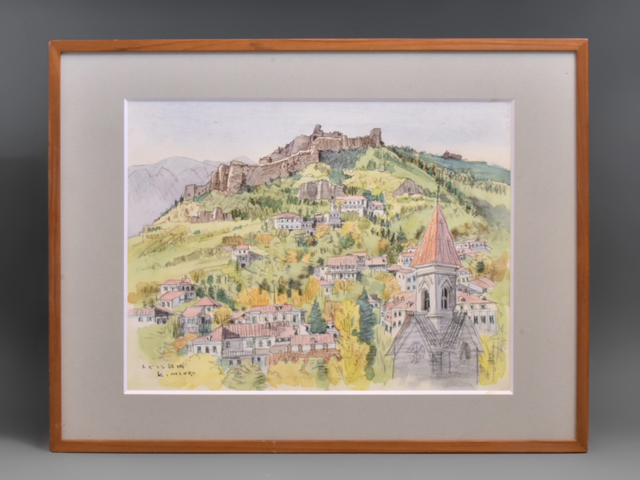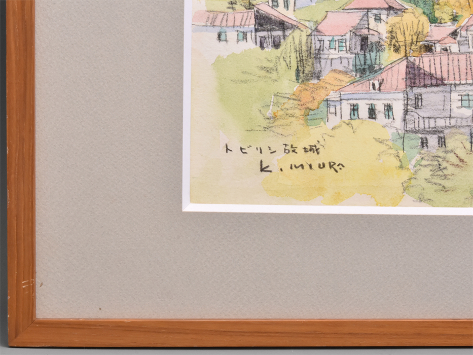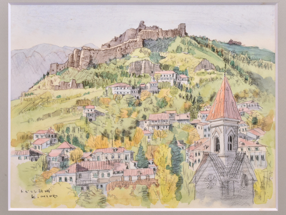 【真作】三浦勝治 水彩画 「トビリン故城」 鉛筆サインあり 額装あり 肉筆 水彩 絵画 書画 アート インテリア ドローイング |