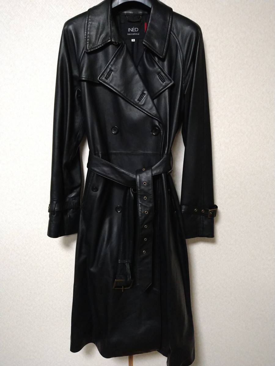 こちらはINEDのレザーコートです。とてもしなやかな柔らかいレザーでダブルのトレンチコート型です。とてもカッコイイです。