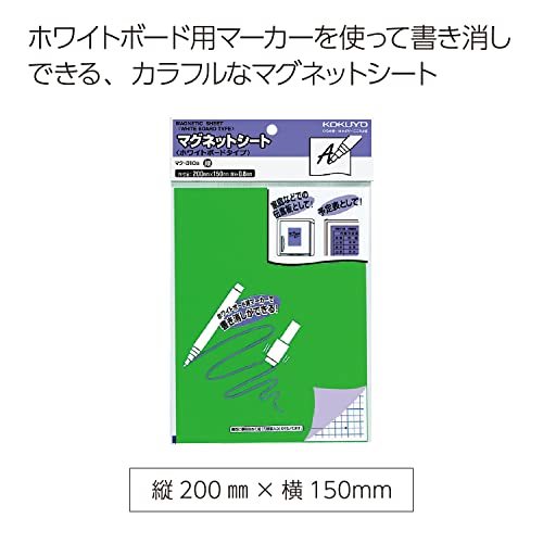 ・緑 マク-310G・・Color:緑・【外寸法】 200×150×t0.8mm・【色】 緑・【材質】 表面/PVC-P、PPフィルム 裏面/マグネットシート●用途に合わせて、カッターやはさみで自由な形にカットできるマグネットシートです。 ●カットに便利な方眼罫入りあて紙が付いています。 ●ホワイトボード用マーカーを使えば書き消しできます。