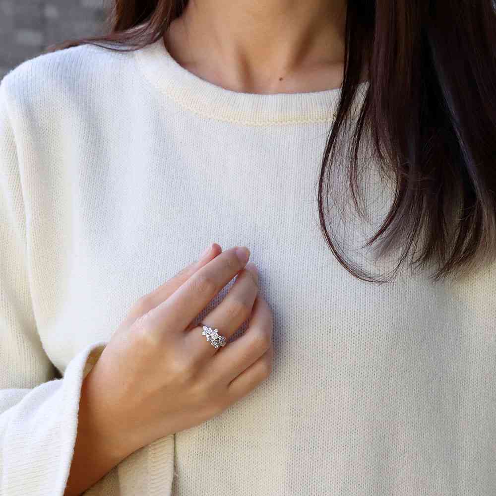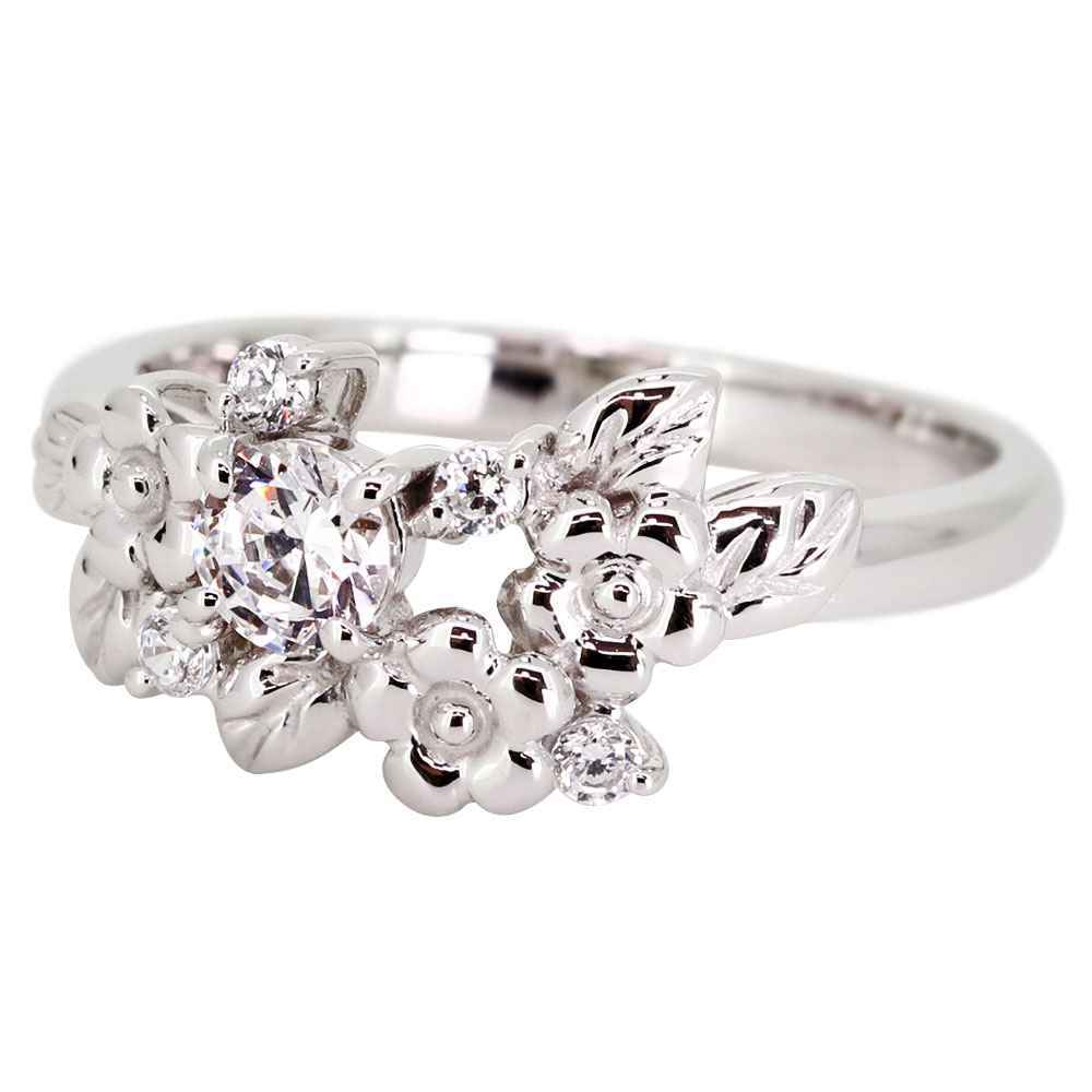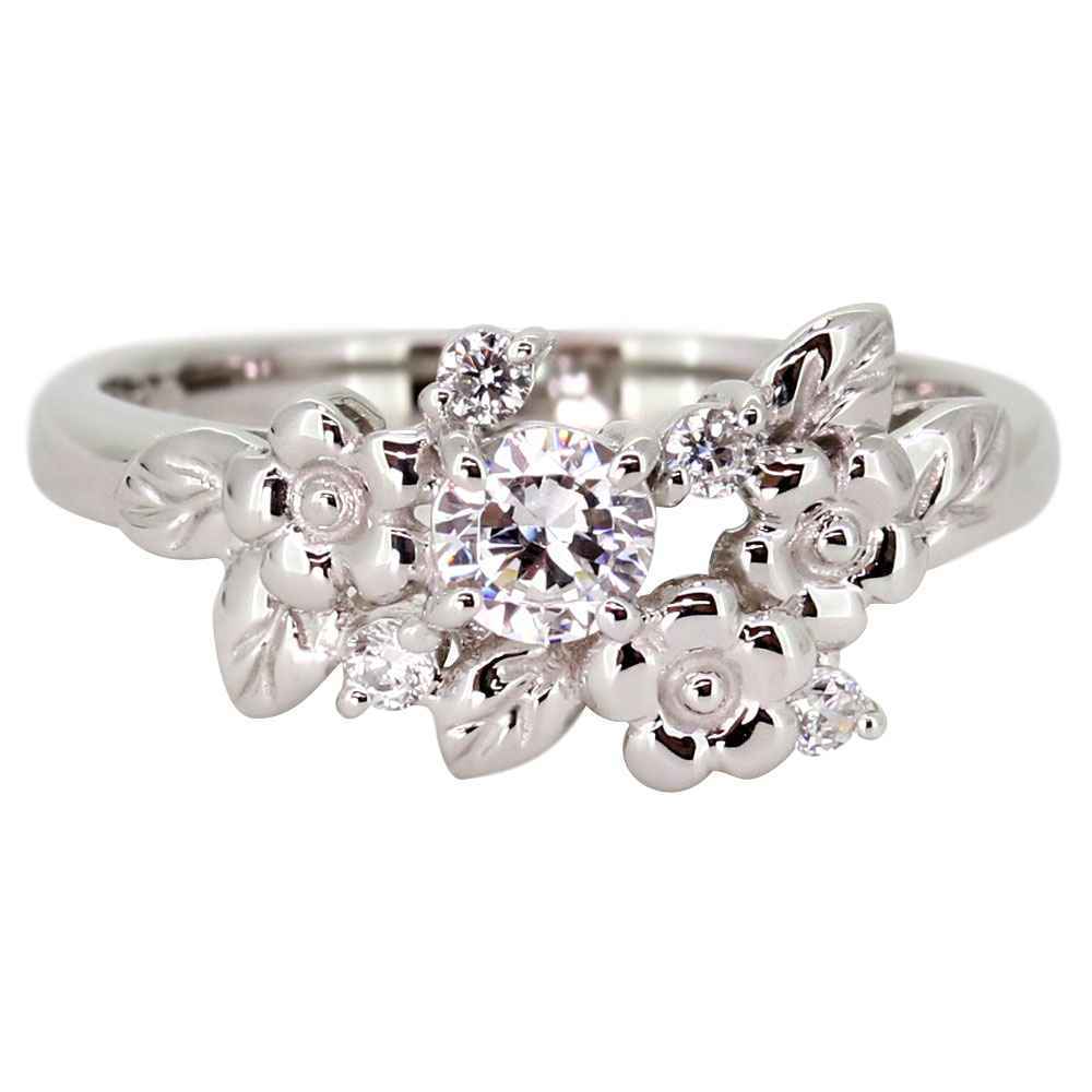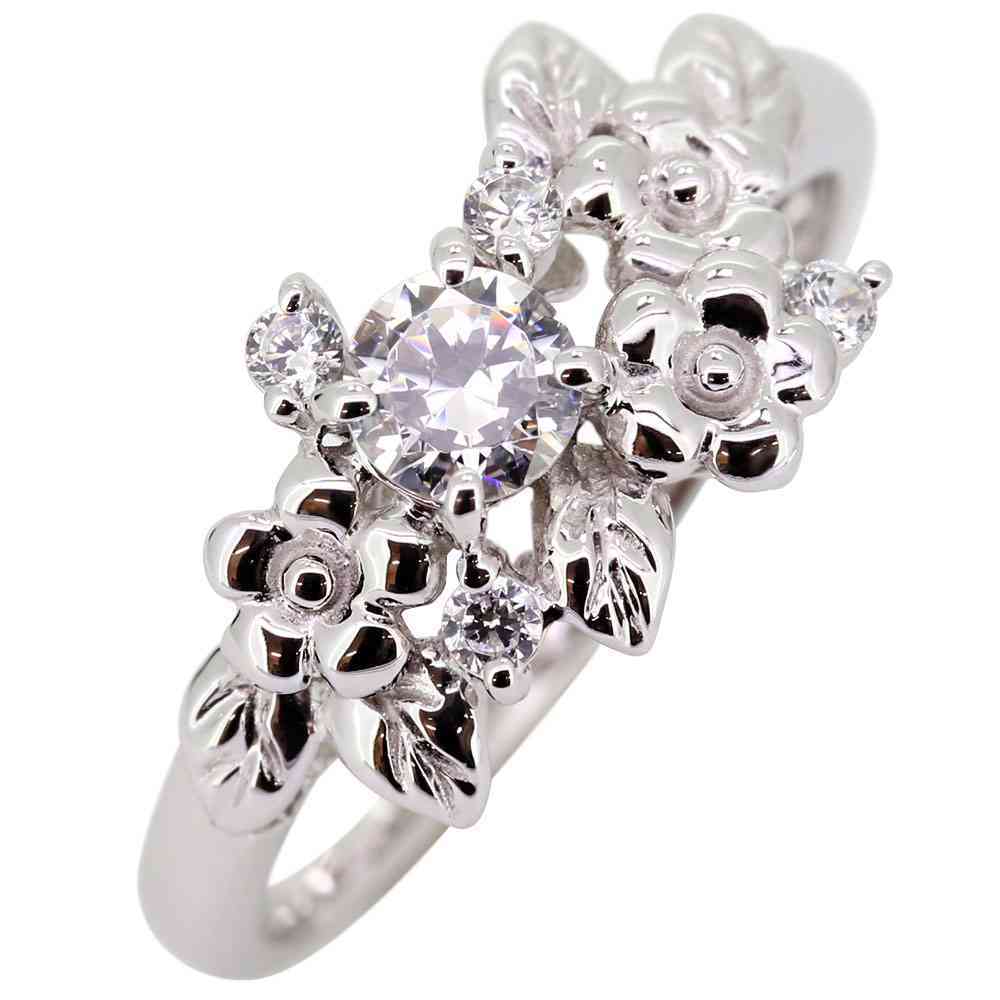 4月誕生石ダイヤモンドを使用したシルバー製の、フラワー(花)モチーフのレディースリング(指輪)です。