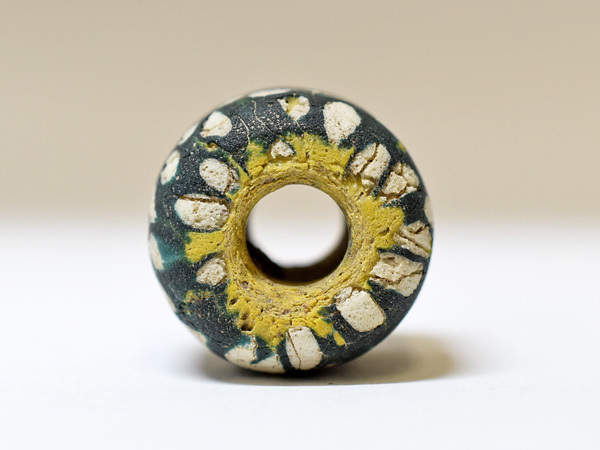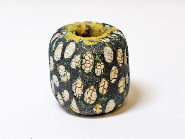 ジャワ島出土の大粒アンティークモザイクガラスビーズです。現地ではトカゲの意を持つ名前の一粒です。藍染の絞りのような意匠です。コレクションにも、ネックレスのヘッドにもおススメです。状態は概ね良好です。