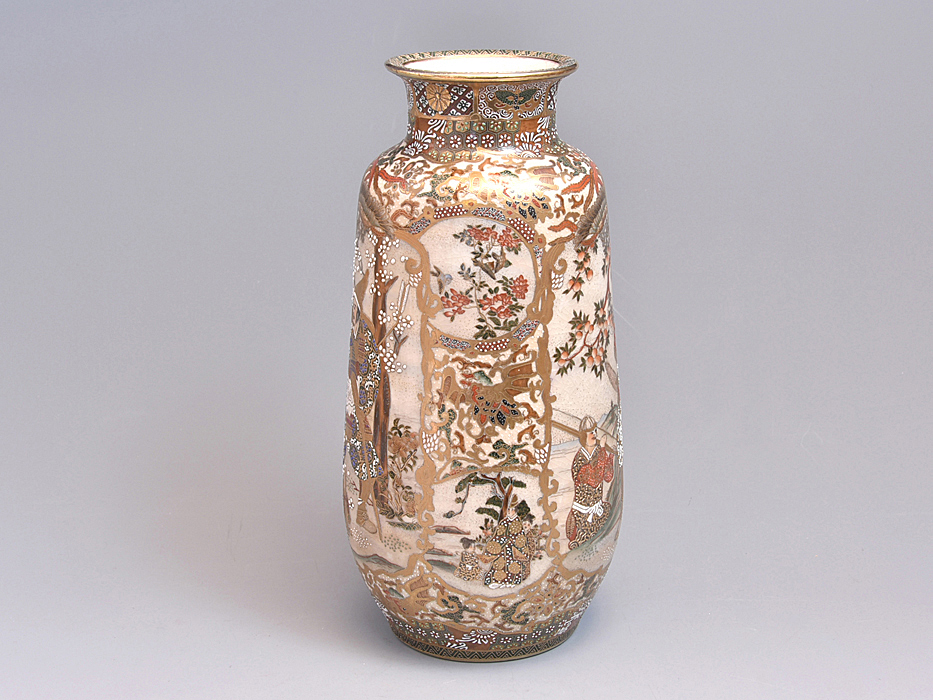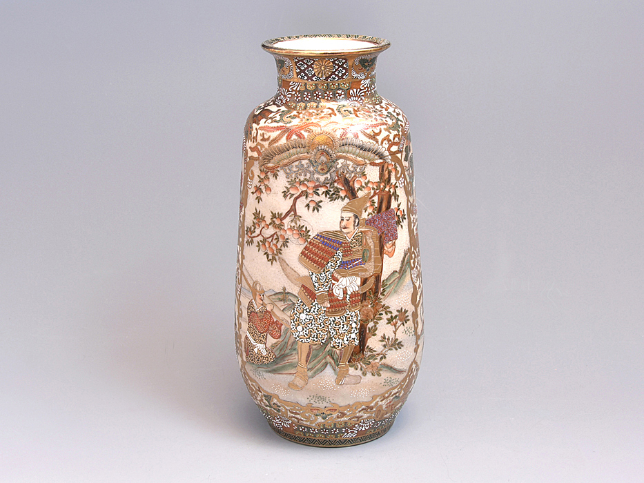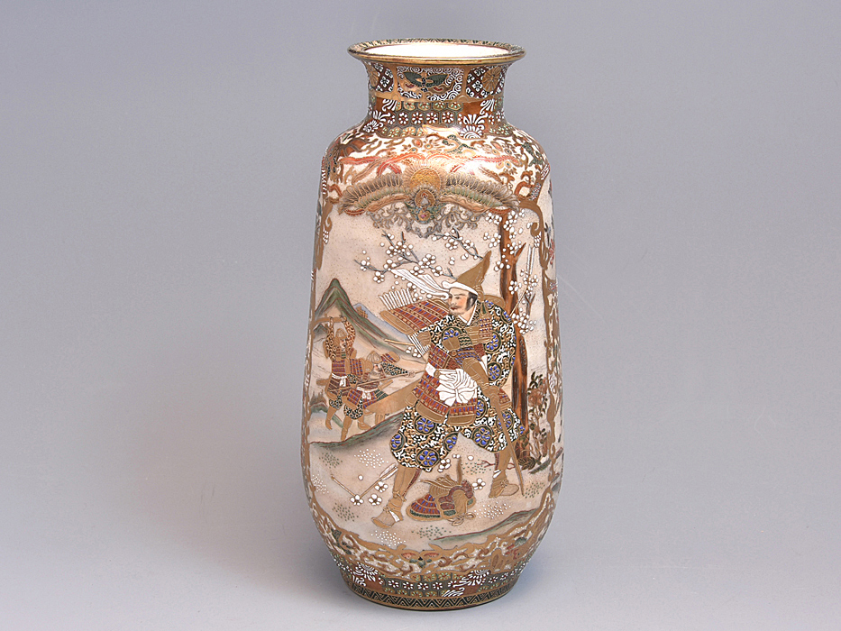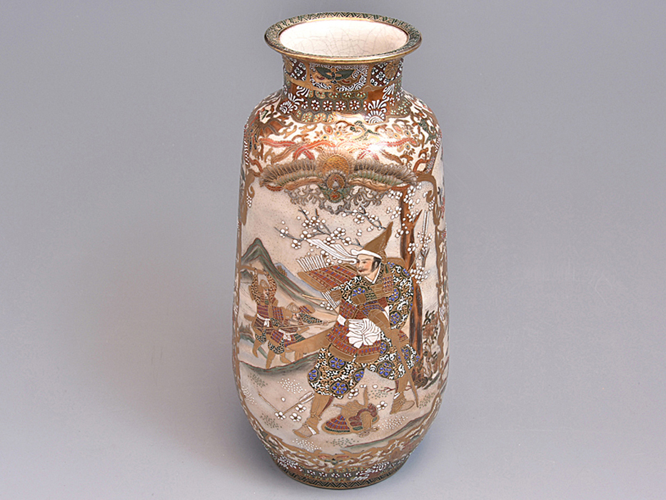 豪華絢爛 明治期 扇山銘 薩摩焼金彩色絵源氏武者図花瓶 源頼朝 花器 花入 花生 古陶磁器 飾壺 里帰品 輸出手 美品 |