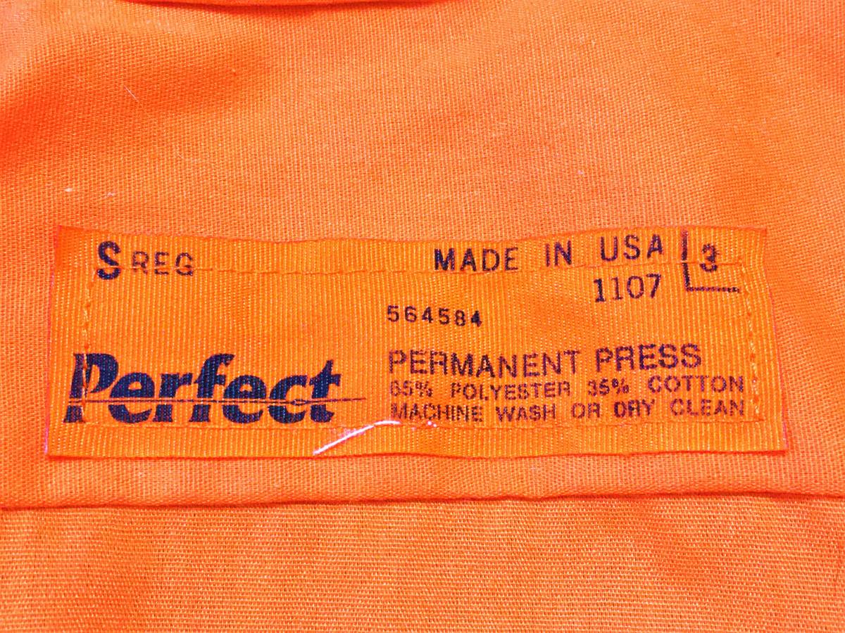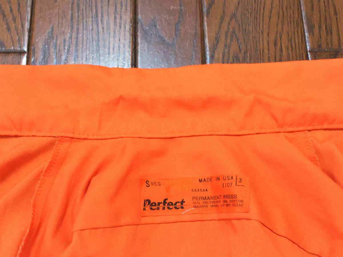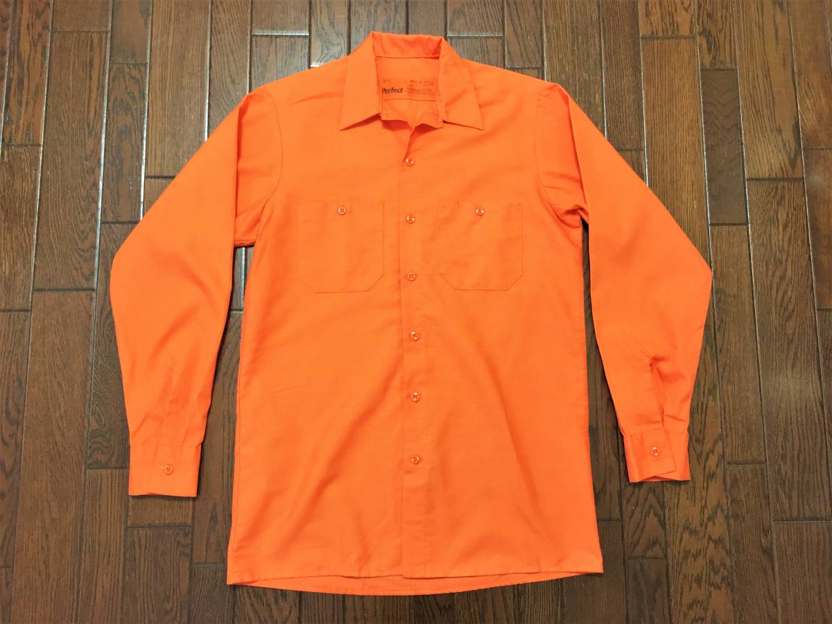 希少 USA製 Perfect パーフェクト 長袖 ワークシャツ S オレンジ アメリカ製 検索 囚人 プリズナー 作業着 バイカー スケボー
