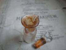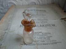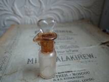 アンティークフランス製ハート蓋ガラス瓶です。なんとも愛らしい形です。型ガラスです。香水の香り残っております。瓶に移し変えるときにお使いいただいたものかも知れません。1960年頃のお品物です。今にないガラスのデザインが素敵ですね。口淵に香水が茶色く残っております瓶の口淵にべたつきございます。お写真でご確認下さい。古いビンテージの香水瓶ですご理解ある方ご入札下さい。ご了承下さい。佐川急便でお送りさせていただきます。香水瓶高さ7,6センチ口径1,2センチ底径2,1センチです。*NO2236