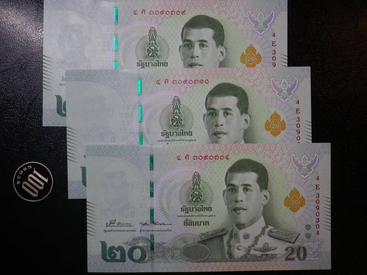 タイ王国 2022年 20バーツ 3枚組 未使用