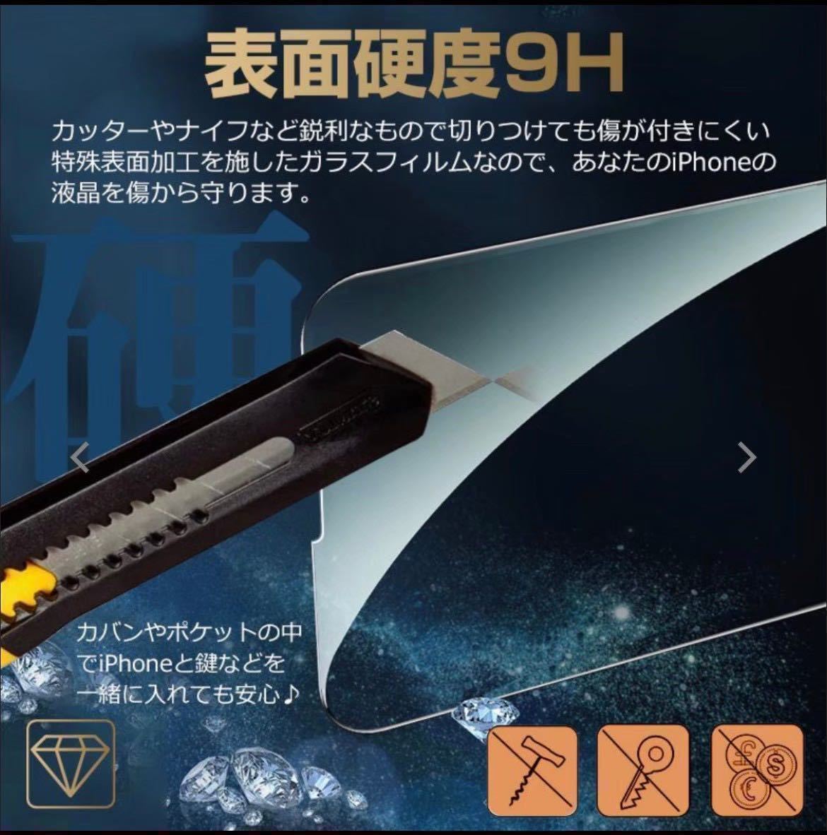 液晶画面に当たる部分は硬度9H強化ガラスフィルムで外部の衝撃からしっかり守ってくれます。