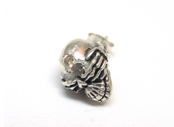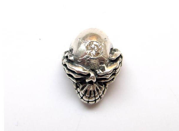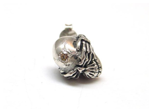 ◆スカルヘッドシルバー製ダイヤモンドセッティングピアス◆