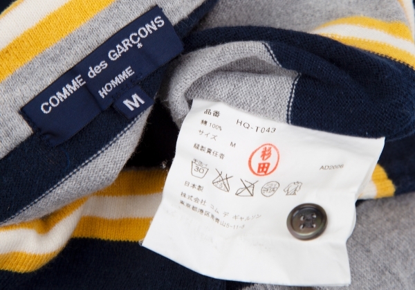 | コムデギャルソンオムCOMME des GARCONS HOMME アウトシームボーダーポロシャツ グレー紺黄M |