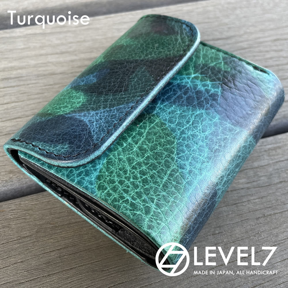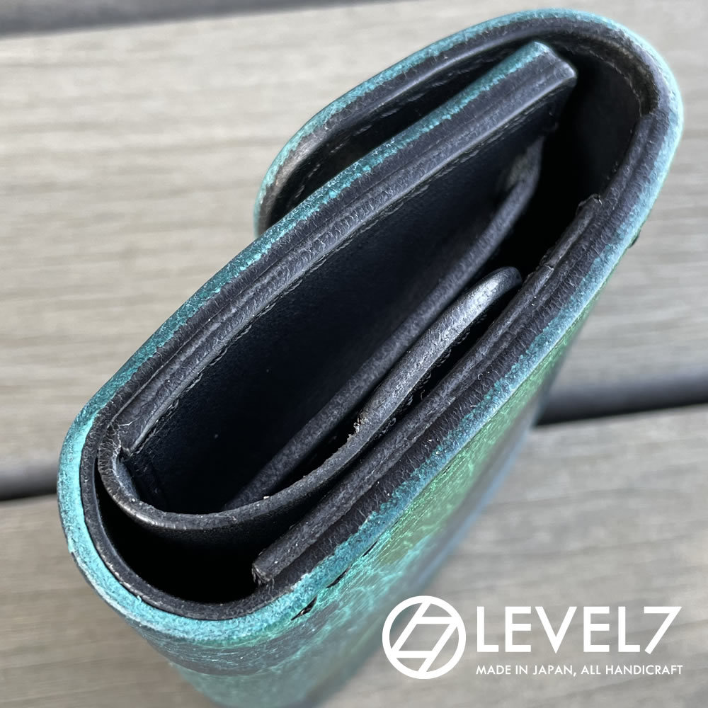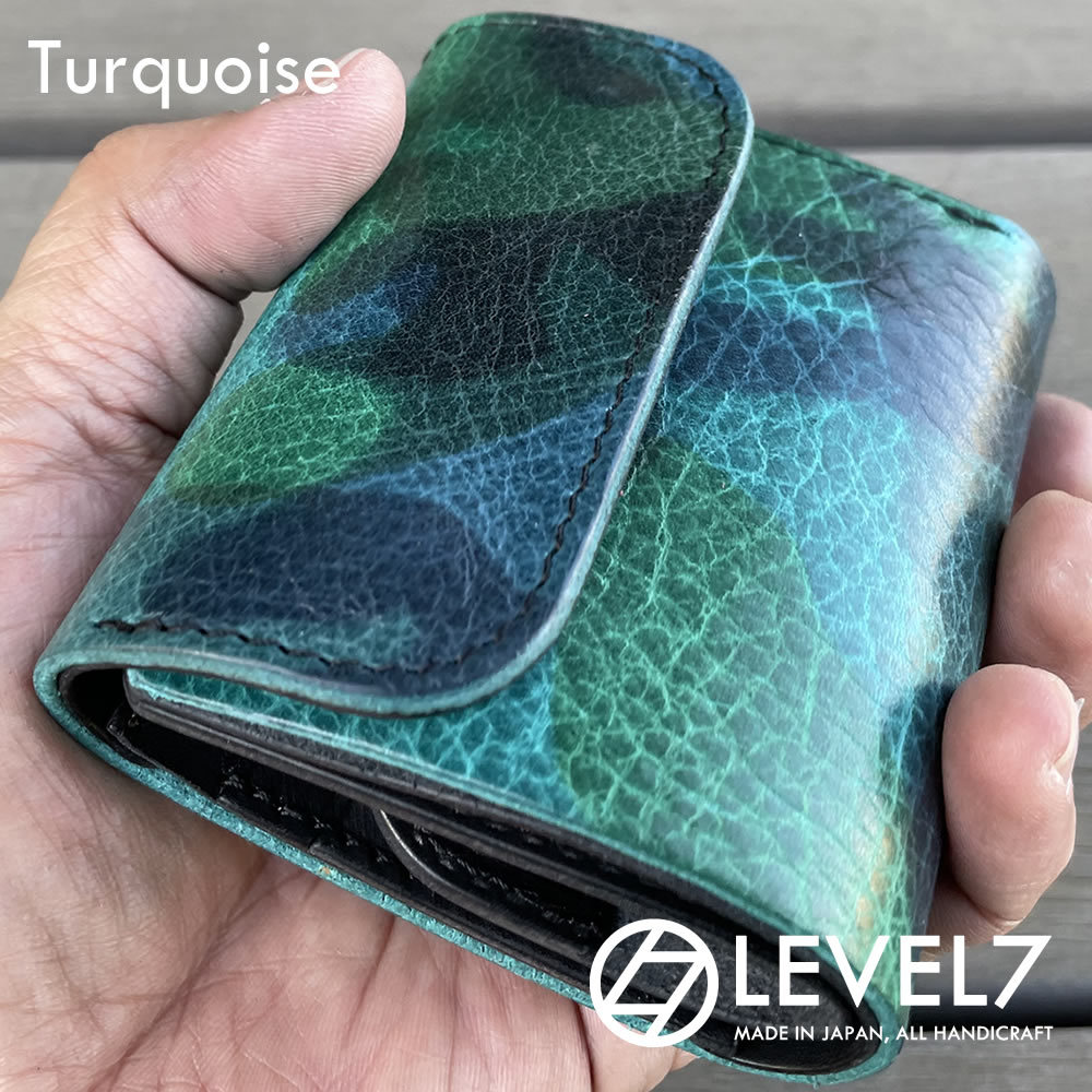 イタリア、トスカーナ州のアッズーラ社のエルヴァケーロをアウターに、インナーには、同社のクラストブラックを使用し仕立てたコンパクトウォレット。ターコイズブルーカラーのカモフラージュ(迷彩柄)。 100%フルタンニンのヌメ革で、シッカリとオイルを含んでいますので、折り曲げたりしますと、革の油分が移動し、色の変化が楽しめるプルアップレザーです。 迷彩柄のプルアップレザーと、表情がとても豊かなユニークな製品です。 イタリアの伝統的な製法にてなめされたヌメ革は、他に類をみない素晴らしいエイジングをします。アウター、インナー共に天然タンニンの素材にもコダワリなめされた革、革を育てる楽しみを教えてくれ、あなただけの唯一無二のアイテムに変化して行きます。 品質はもちろん、アッズーラ社のフルベジタブルタンニンなめしならではの素晴らしい香りに包まれる最高品質のレザーウォレットです。 小さいながらも、大容量のコンパクトウォレット。 カードは、取りやすい横向きに2枚と縦向きに1枚ございます。 小銭入れは、ファスナーを使わず、マチを大きく取り、広く開くカブセ式を採用しています。 小銭入れの裏を固定せず、収納にすることで、小銭の出し入れが、スムーズになるよう、工夫しています。 その収納部にも数枚のカードを忍ばせることが出来ます。 札入れも余裕あるサイズを確保していますので、取り出しもスムーズ! |