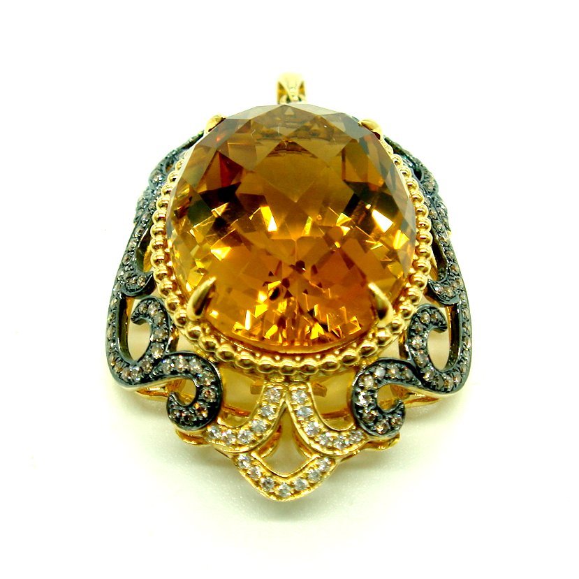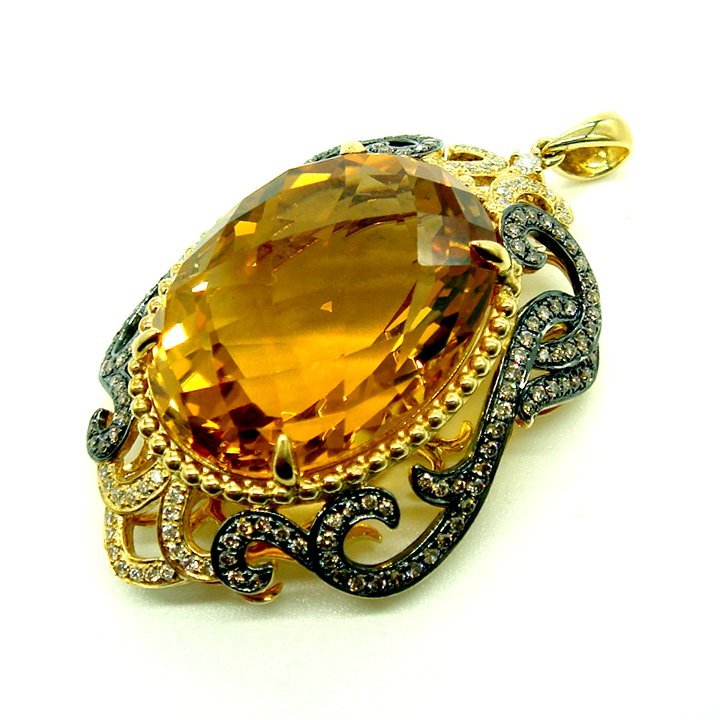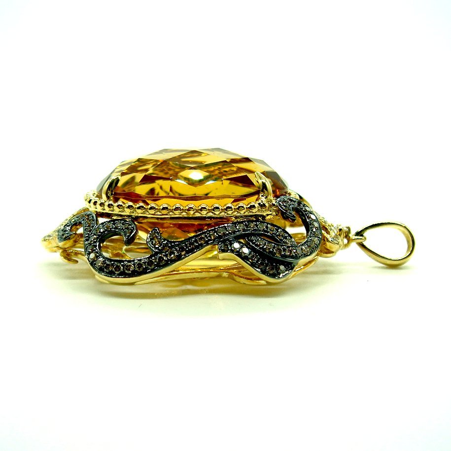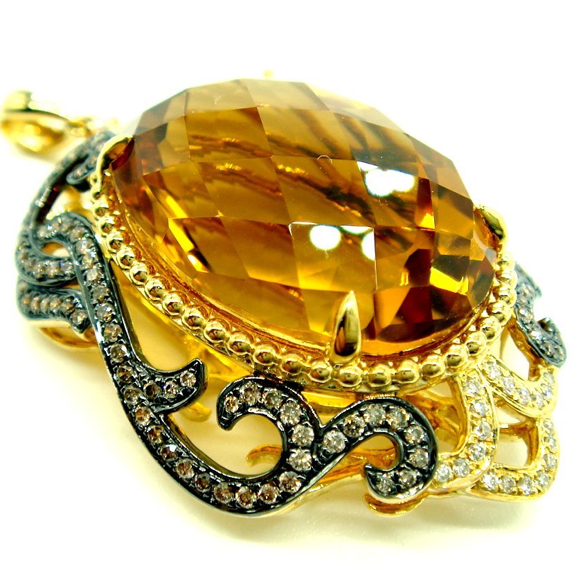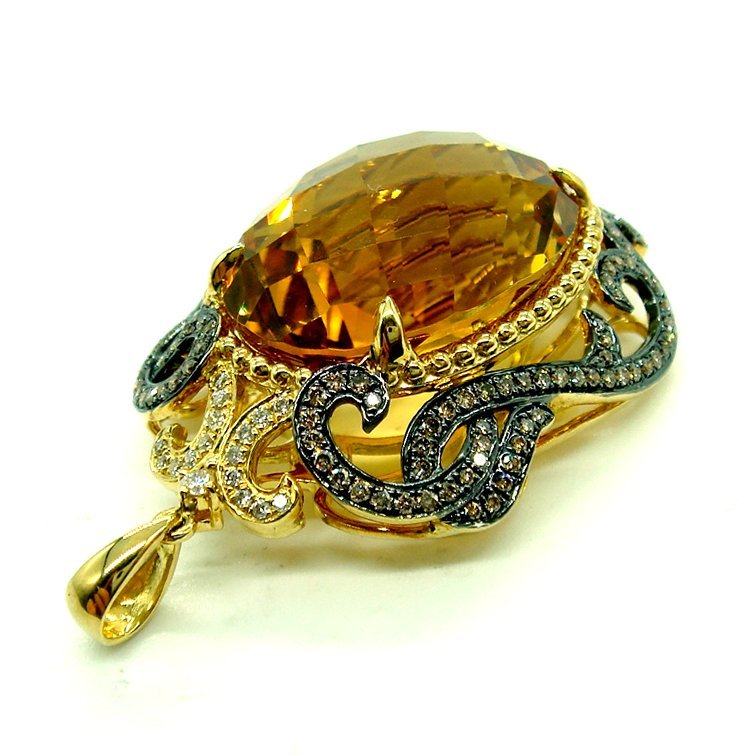 PE892:K18YG(一部黒メッキ仕上) シトリン ブラウンダイヤ ダイヤ ペンダント【鑑別書付】