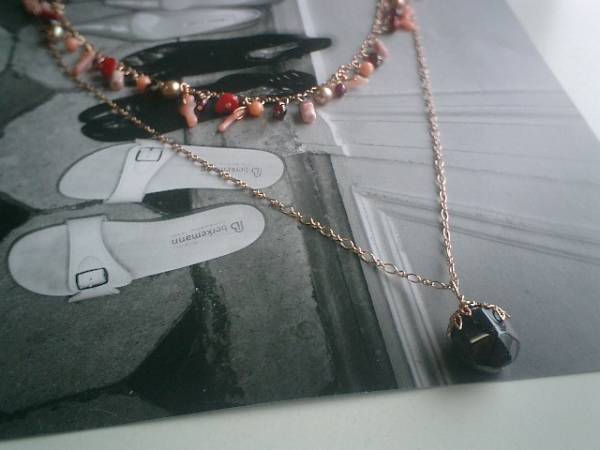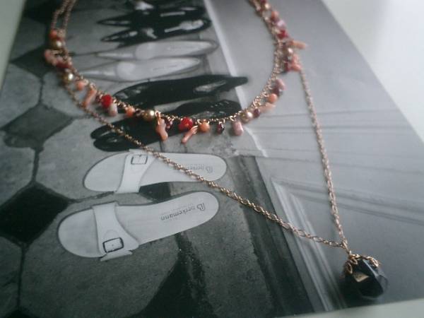 ナイーブ少女・・シリーズです♪春色の小さな花束・・ピンク珊瑚や赤珊瑚やガーネット、インカローズ、シャンパンブロンズ色の淡水パールなどやさしい色を集めたネックレス2点セットです♪どちらもピンクゴールドのチェーンを合わせて甘すぎない大人のロマンチックしています♪3ミリ、4ミリの丸玉やチューブ、さざれなど大きさ違い、デザイン違いの珊瑚やガーネット、インカローズ、淡水パールをランダムに繋いだネックレスは可憐な表情です♪長さは全長70センチ位で調節自由です♪チョーカー風にされても素敵です♪繊細なピンクゴールドのチェーンのトップはシックな座金でおめかししたガーネットのラフカットで15×13ミリ位です♪長さは全長96センチ位で調節自由です♪シンプルで合わせやすいデザインです♪それぞれ単品でも出品しています♪♪お揃いのブレスレットも出品しています♪ハンドメイドをご理解いただいたノークレーム・ノーリターンでお願いします♪