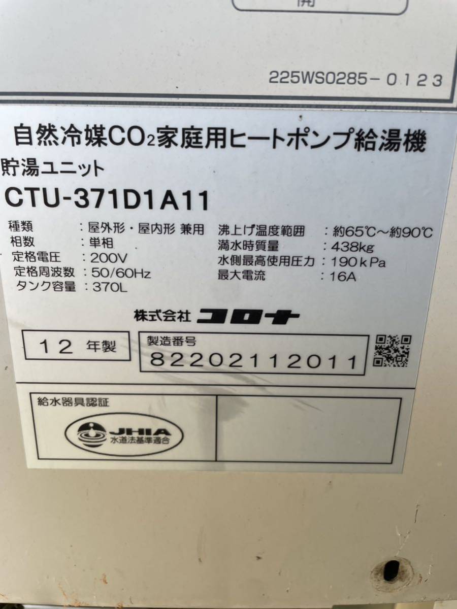 動作音確認 コロナ ヒートポンプ給湯機 CTU-371D1A11 湯張電磁弁 エコキュート中古部品 注湯弁