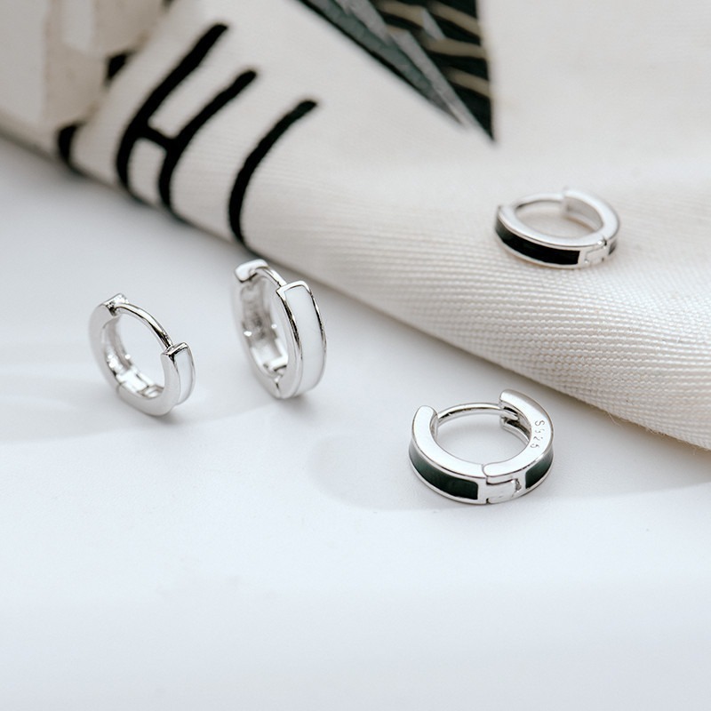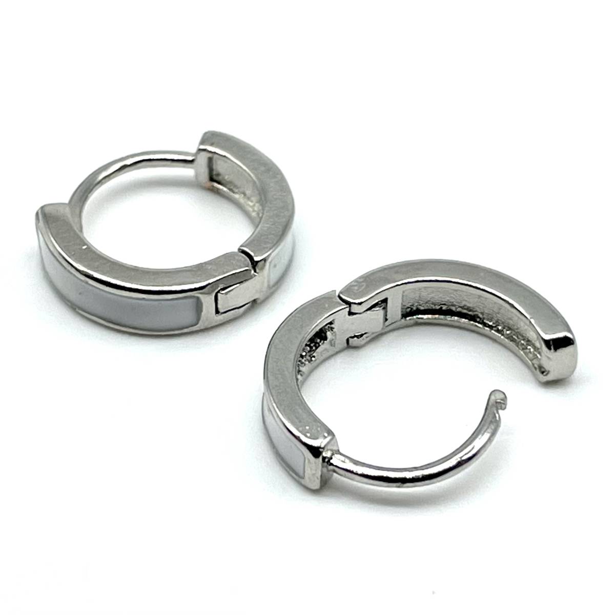 プレーンなリングデザインのフープピアスにカラーラインを配したシンプルピアス。