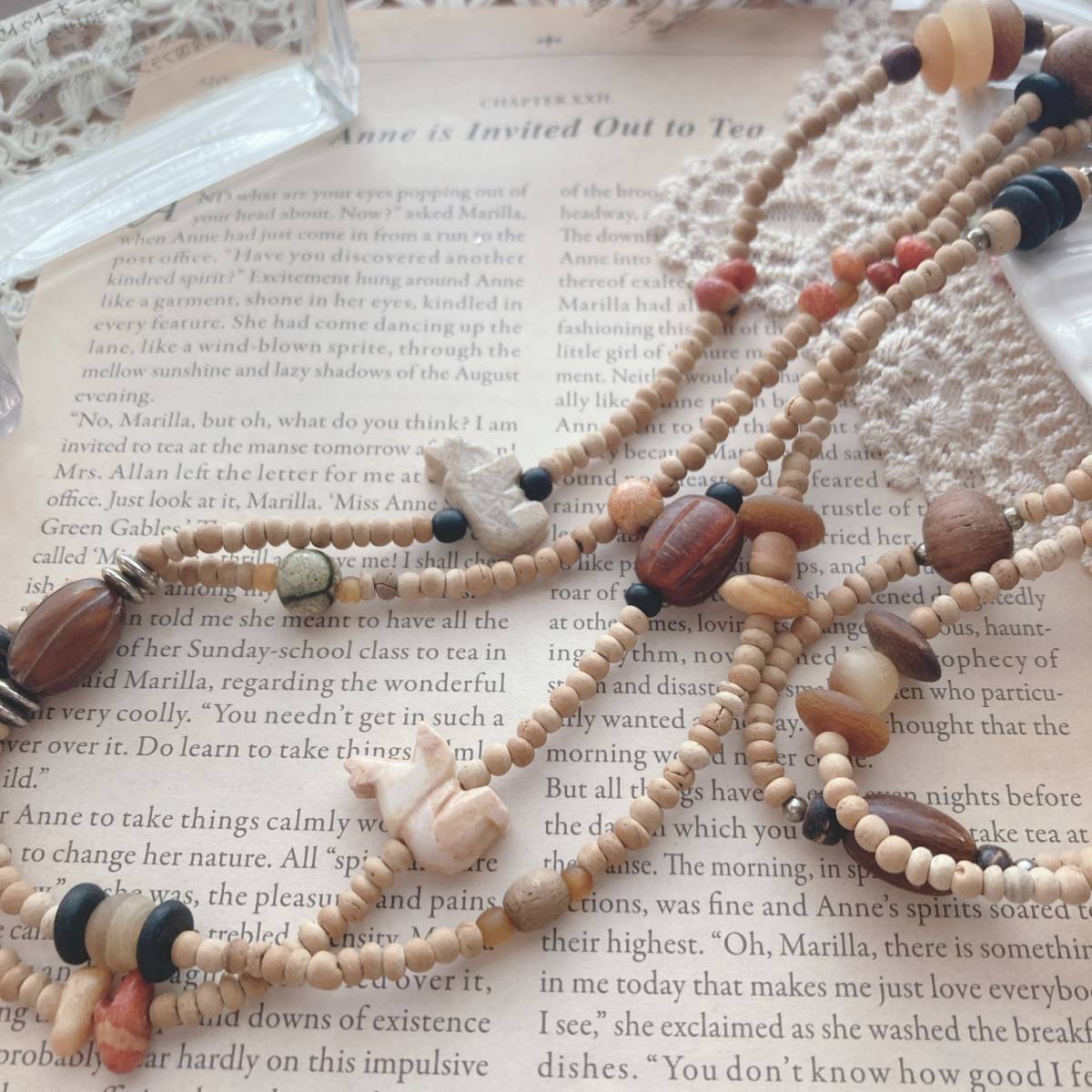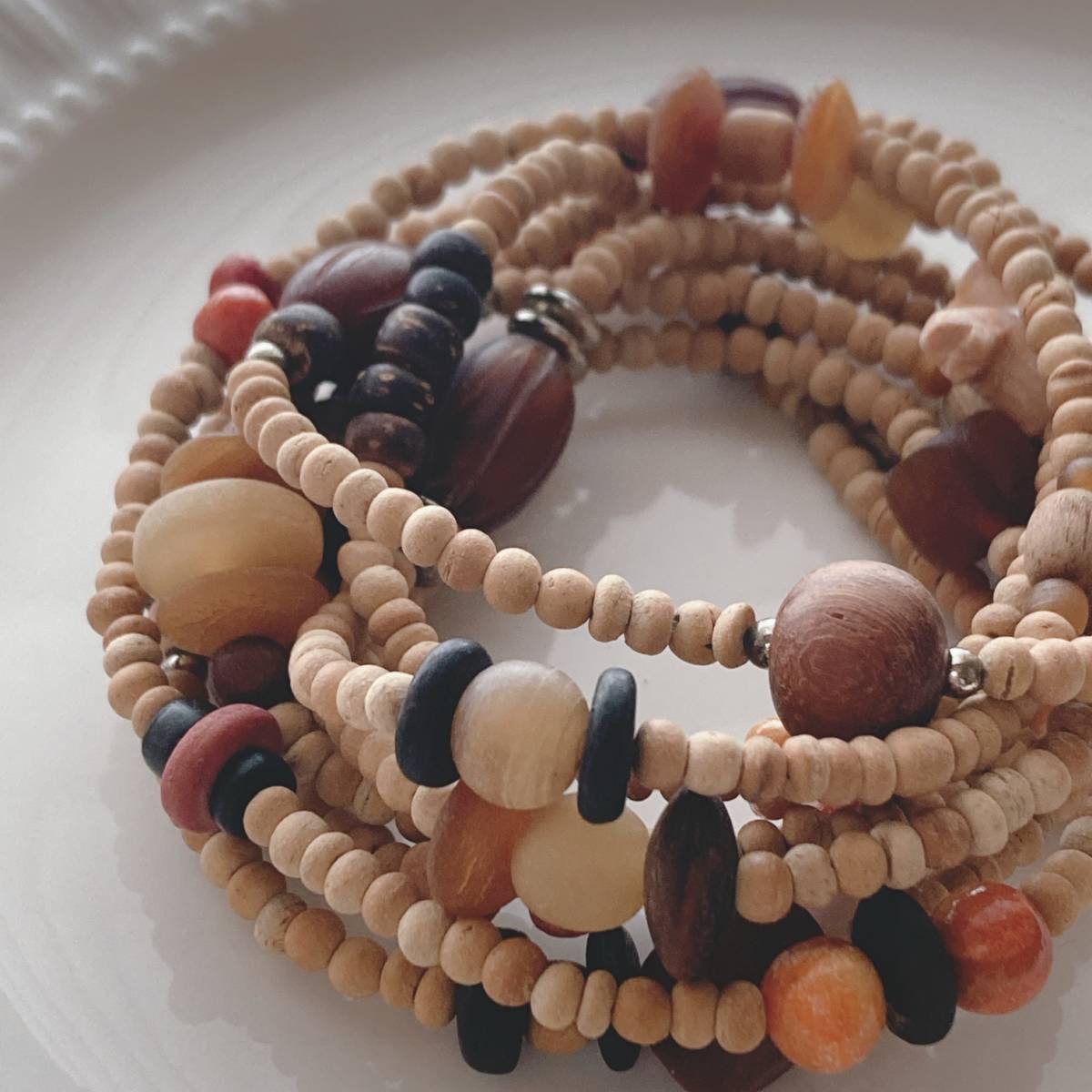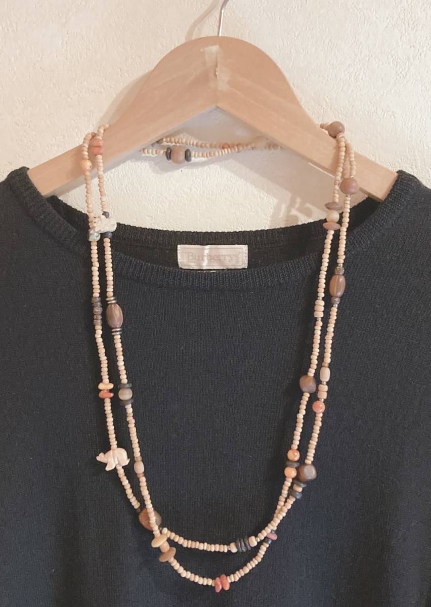 ウッドビーズネックレス ナチュラル ブラウン 木の実 ロングネックレス☆vintage jewelry accessories A204