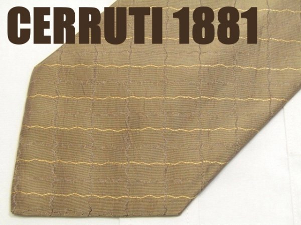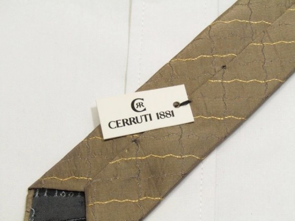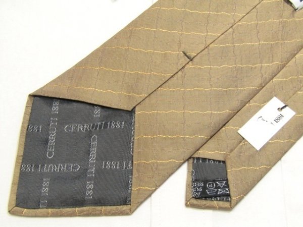 AA 202 セルッティ CERRUTI 1881 ネクタイ ベージュ系 茶系 光沢 ウインドウ柄 ウィンドウペン 格子柄 ジャガード 未使用タグ付き