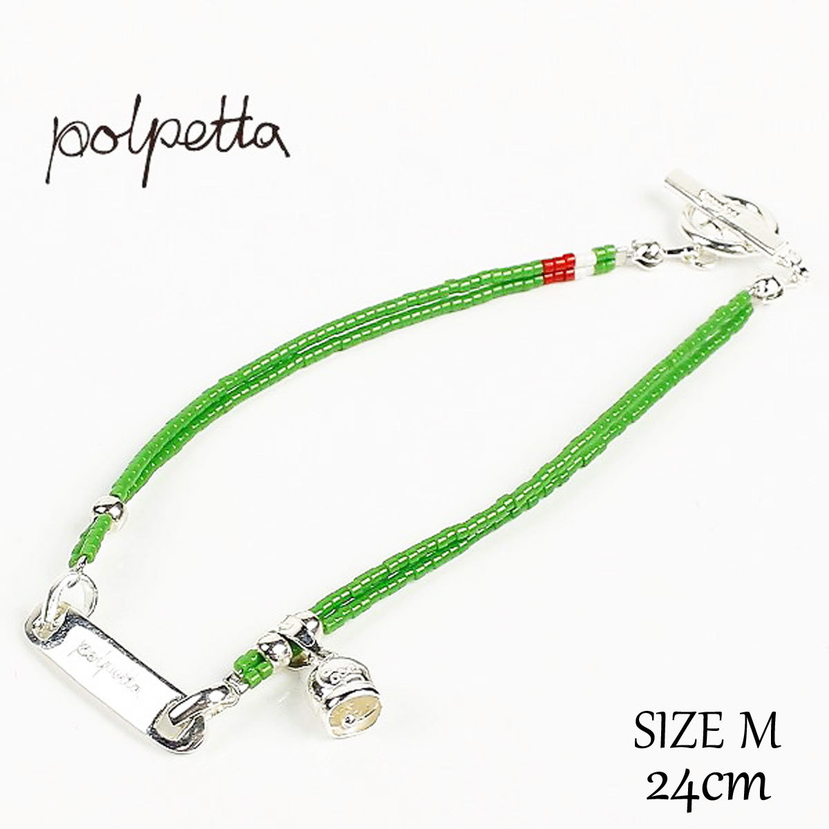 新品 POLPETTA シルバー925 カラービーズアンクレット グリーン M