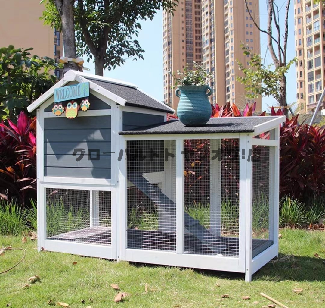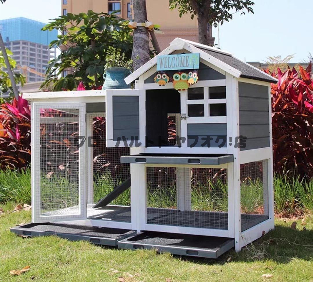 実用★ ウサギケージ うさぎ小屋 ラビットケージ 屋外ウサギケージ 屋外二層木製チキン小屋 木製小動物 アパートメント フラット換 S531