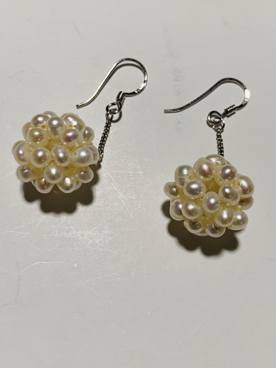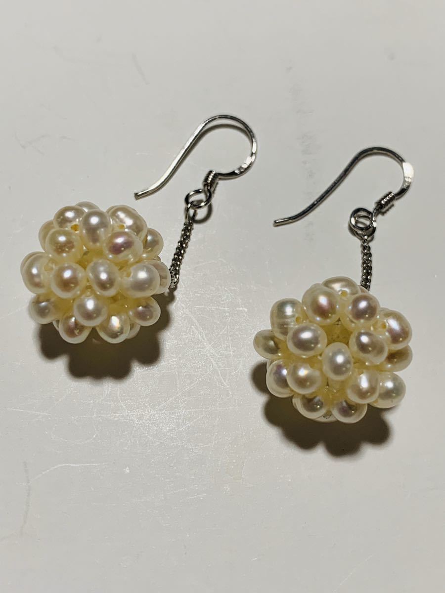 パールの一点ものの、可愛いピアスです、サイズは15×15ミリ、金具はシルバーです