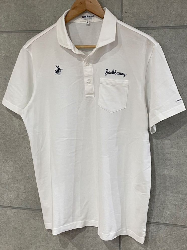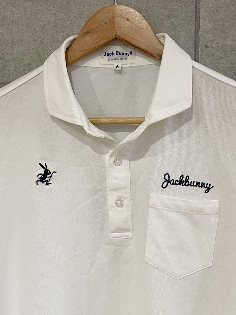 夏本番! PEARLY GATES パーリーゲイツ うさぎワッペン 速乾性 半袖ポロシャツ ホワイト 6サイズ メンズ ゴルフ ゆうパケ可 ○ 新規×