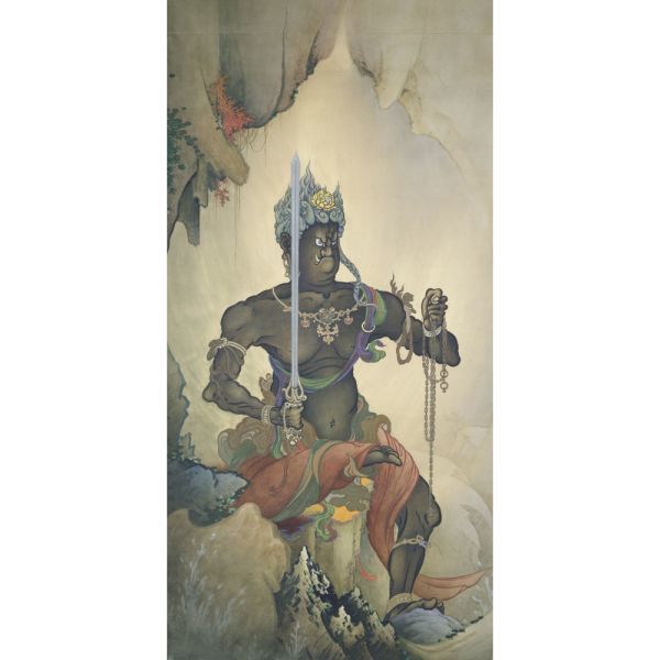 【フルサイズ版】狩野芳崖 不動明王 1887年 東京藝術大学 重要文化財 近代日本画の父 壁紙ポスター 297mm×603mm はがせるシール式 006S2