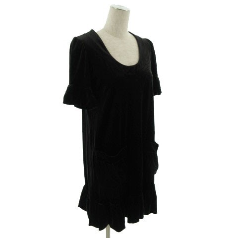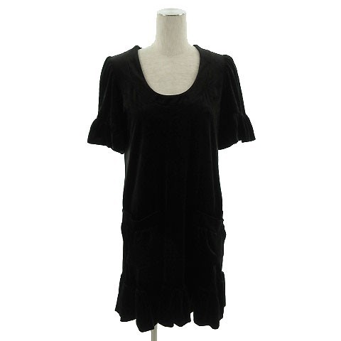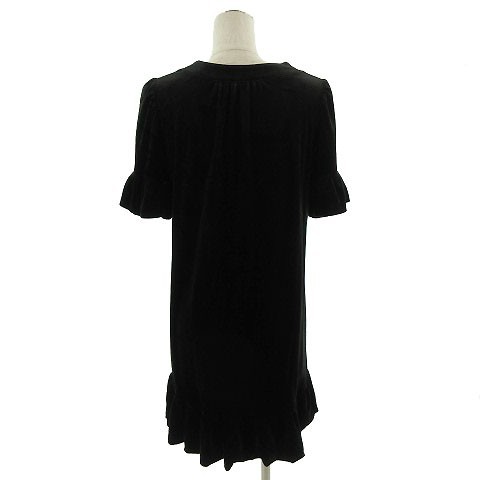 フロベントリラックス flovent relax ワンピース フォーマル ひざ丈 半袖 ベロア フリル ブラック 黒 レディース