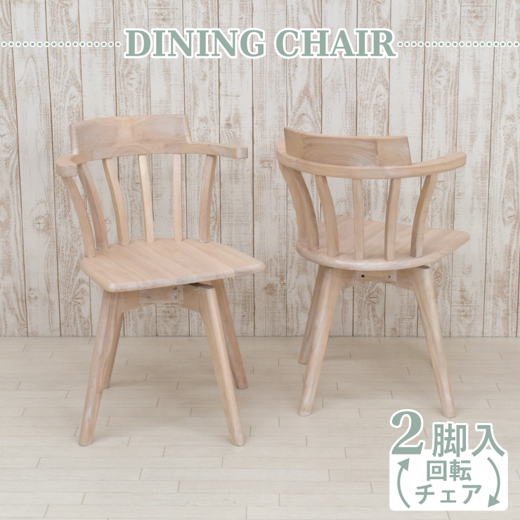 ダイニングチェア 回転イス 2脚セット roman-ch-340ww ホワイトウォッシュ色 椅子 リビング ひじ掛け 9s-1k-194 yk