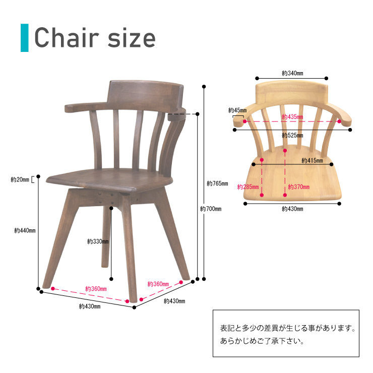 幅525mm×奥行き485mm×高さ765mm(座面高440mm)