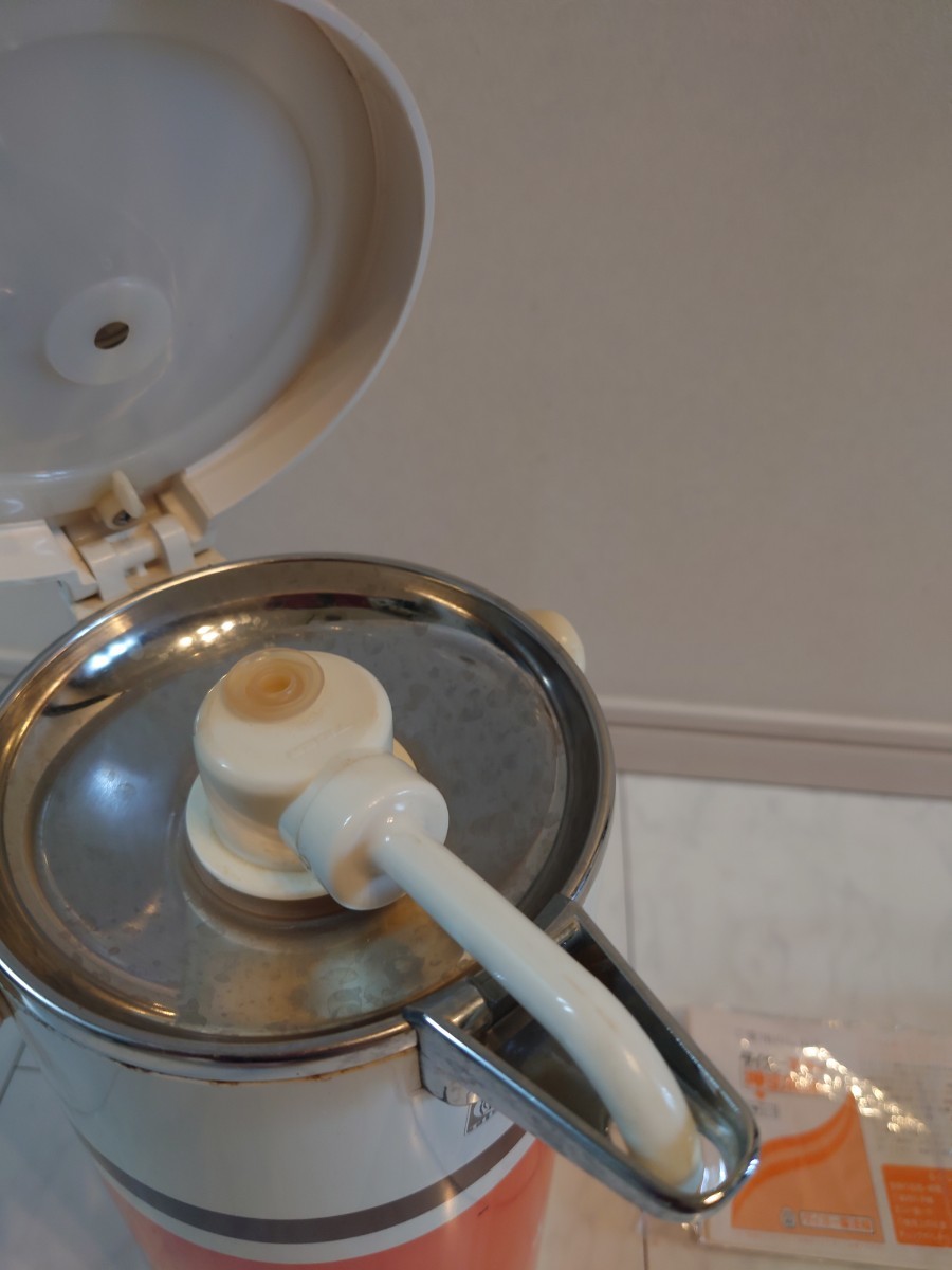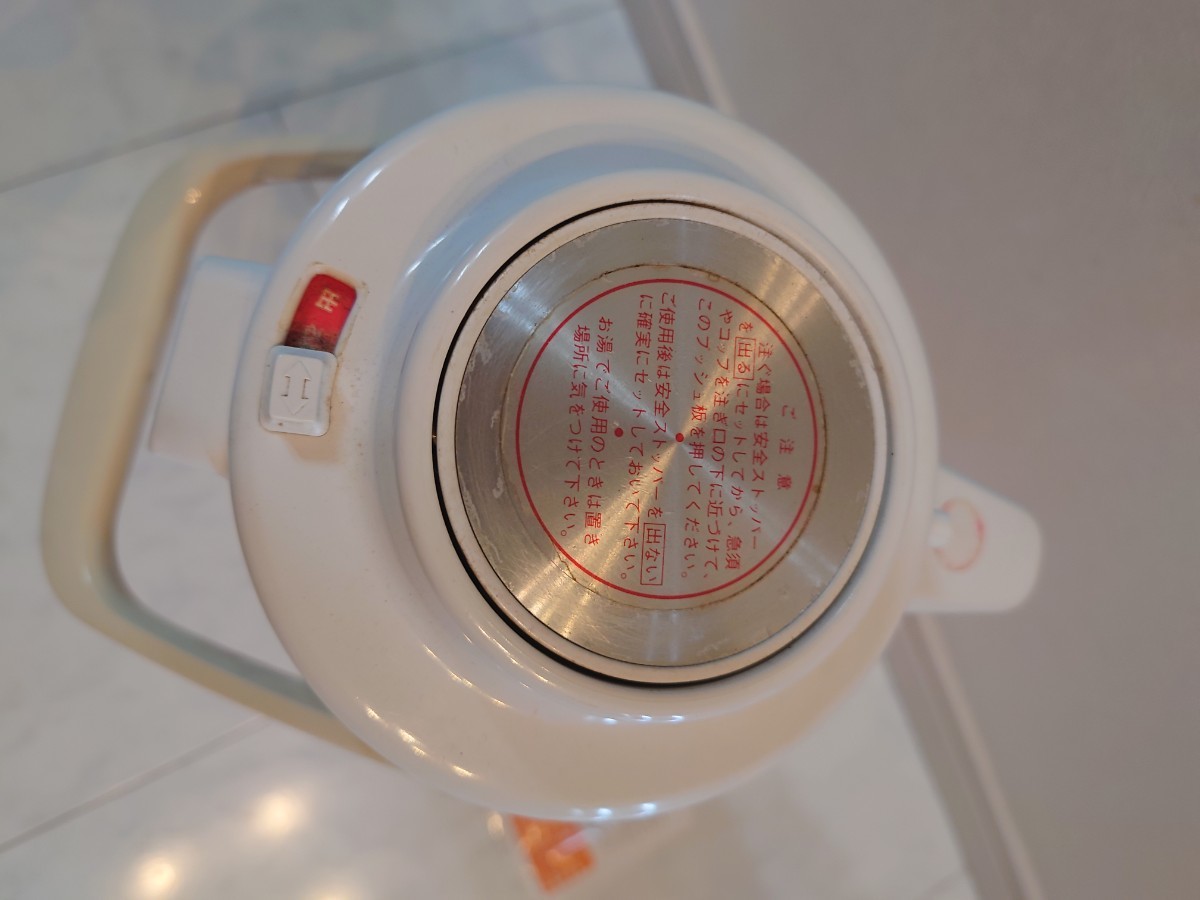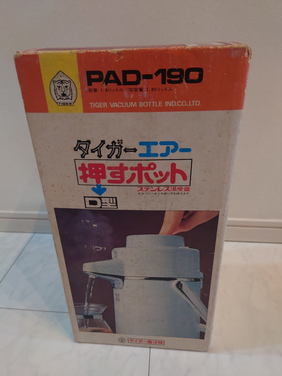 実際に使用していたポットです。箱付き、取説付き、ご愛用者申込みハガキ付きは、なかなか、出ないと思います。