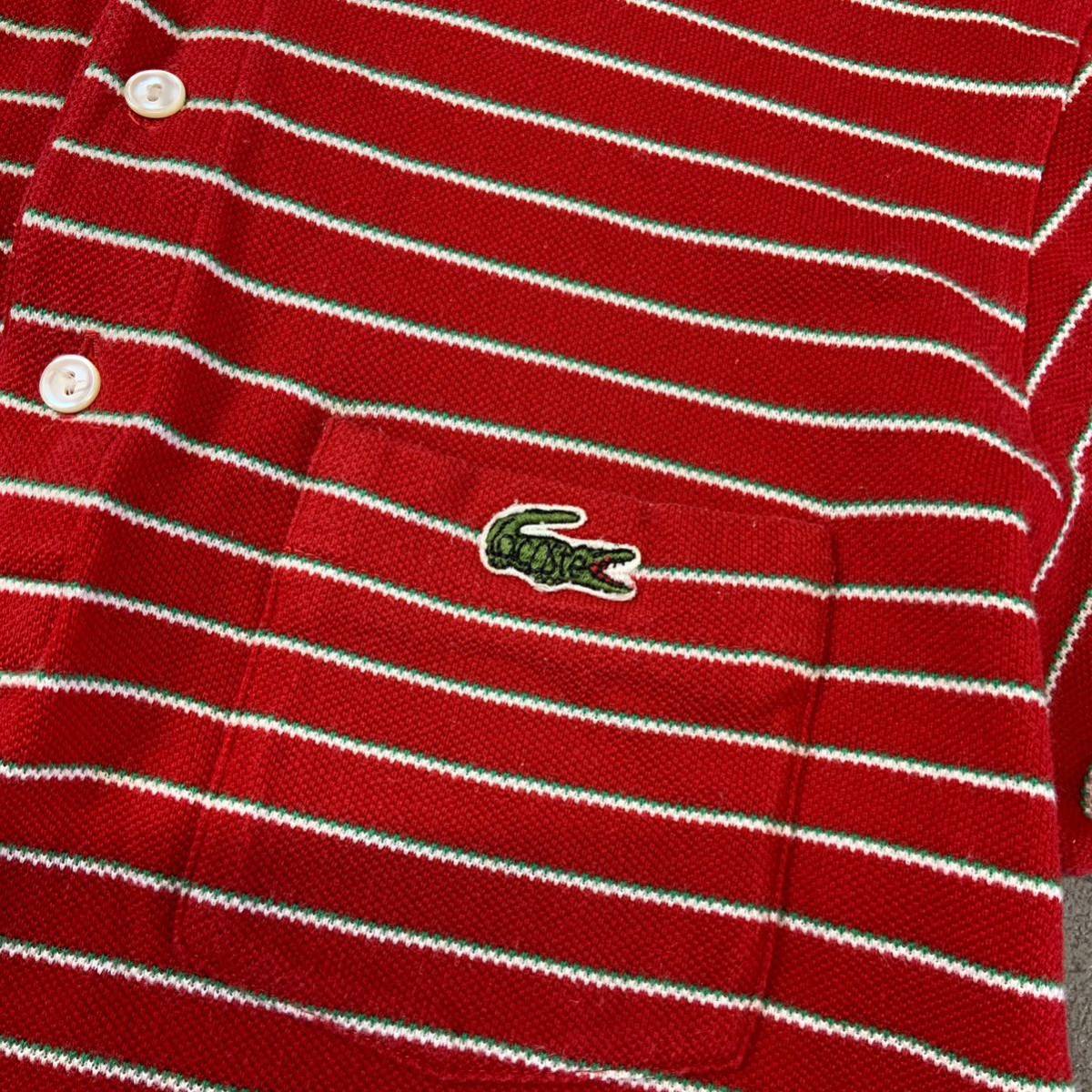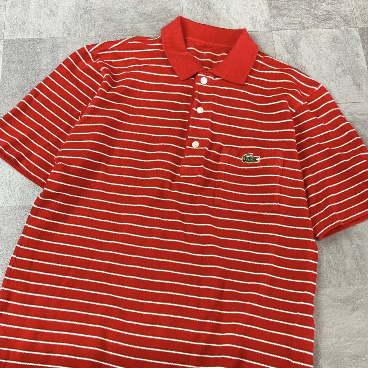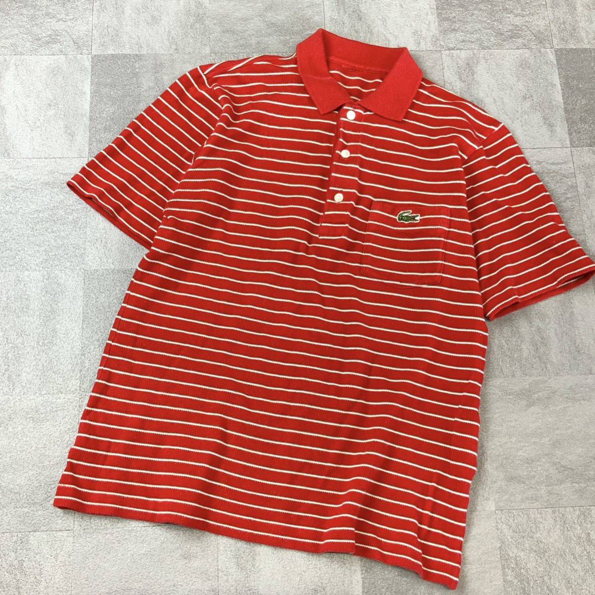 80‘s LACOSTE ラコステ ボーダー 鹿子 半袖 ポロシャツ メンズ 4相当 M相当 レッド ゴルフ golf
