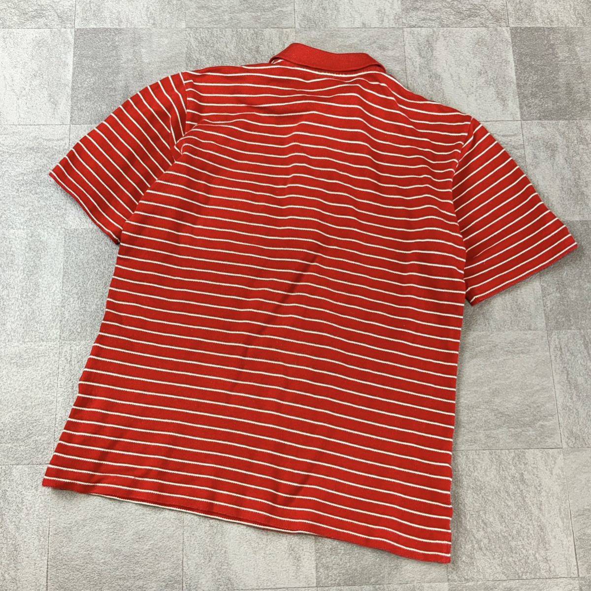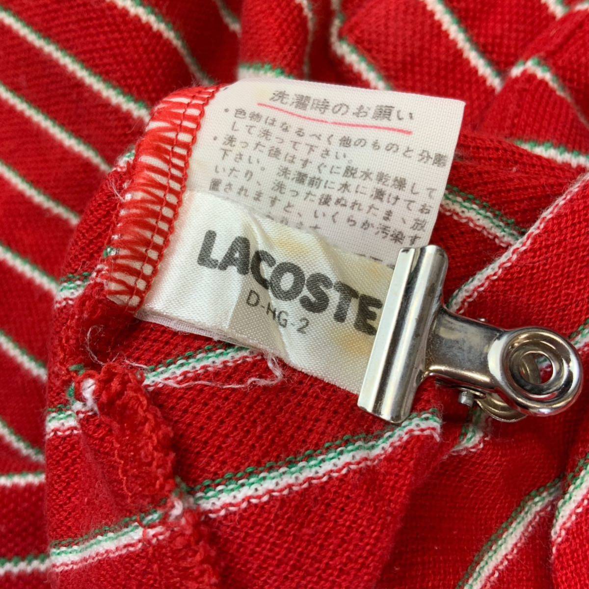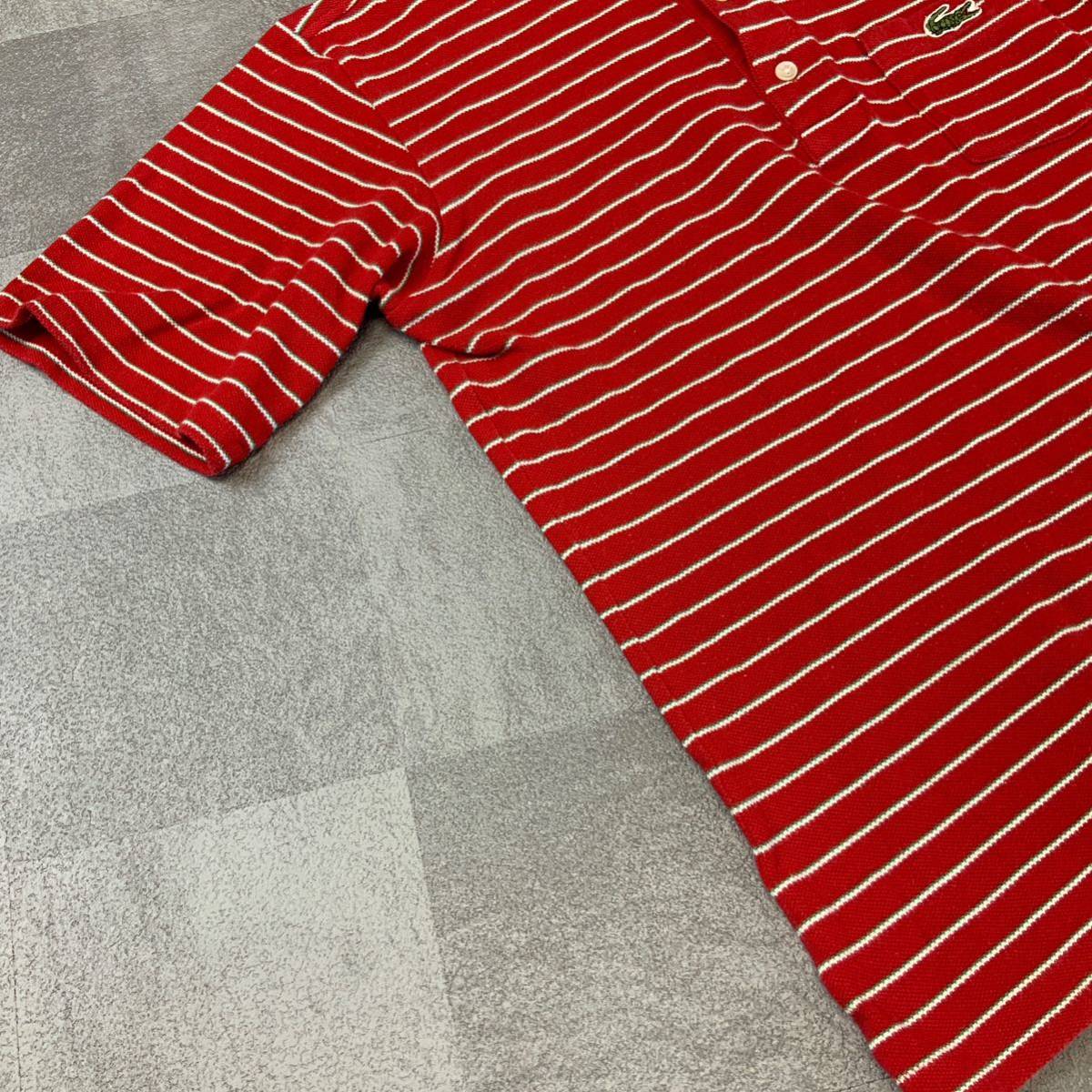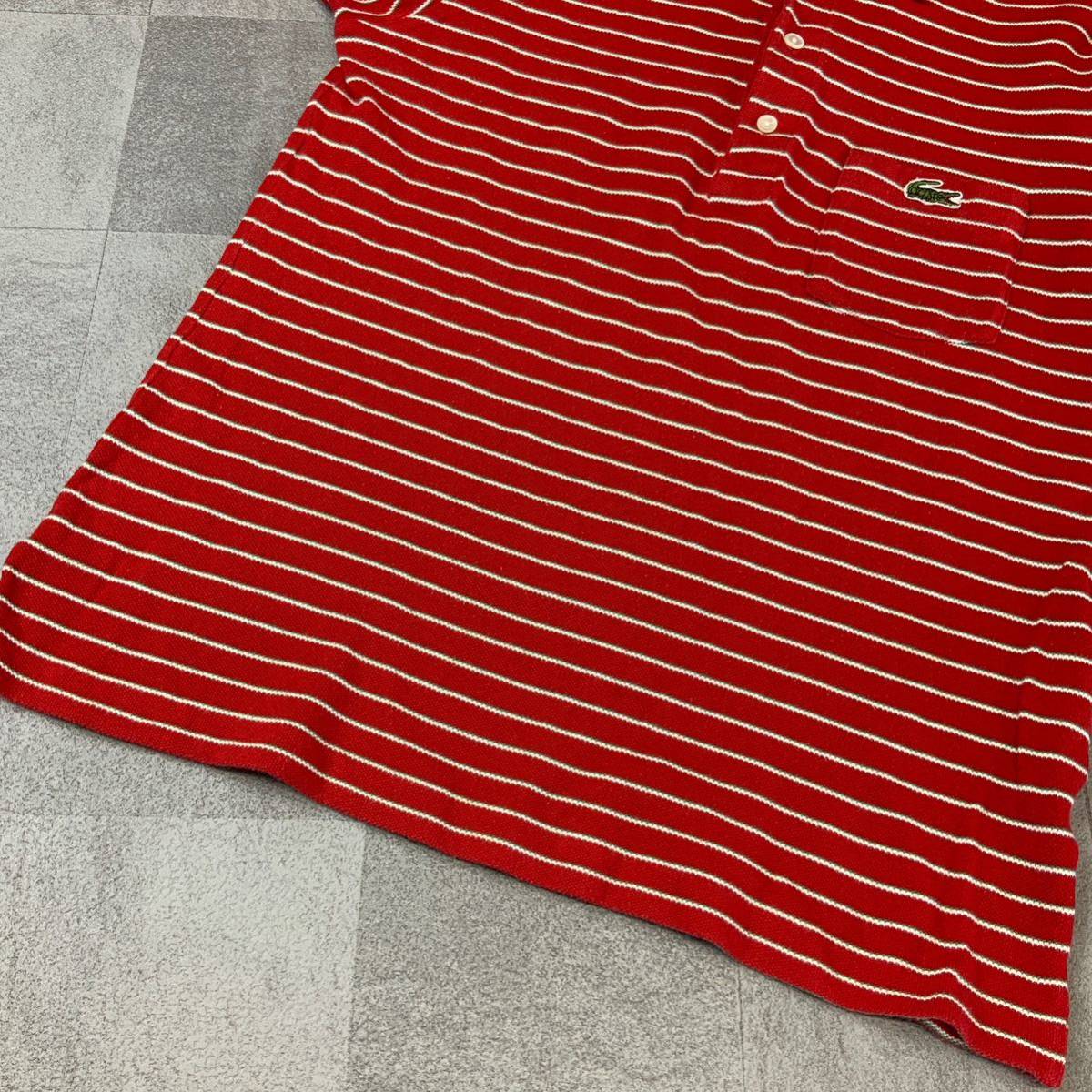 80‘s LACOSTE ラコステ ボーダー 鹿子 半袖 ポロシャツ メンズ 4相当 M相当 レッド ゴルフ golf