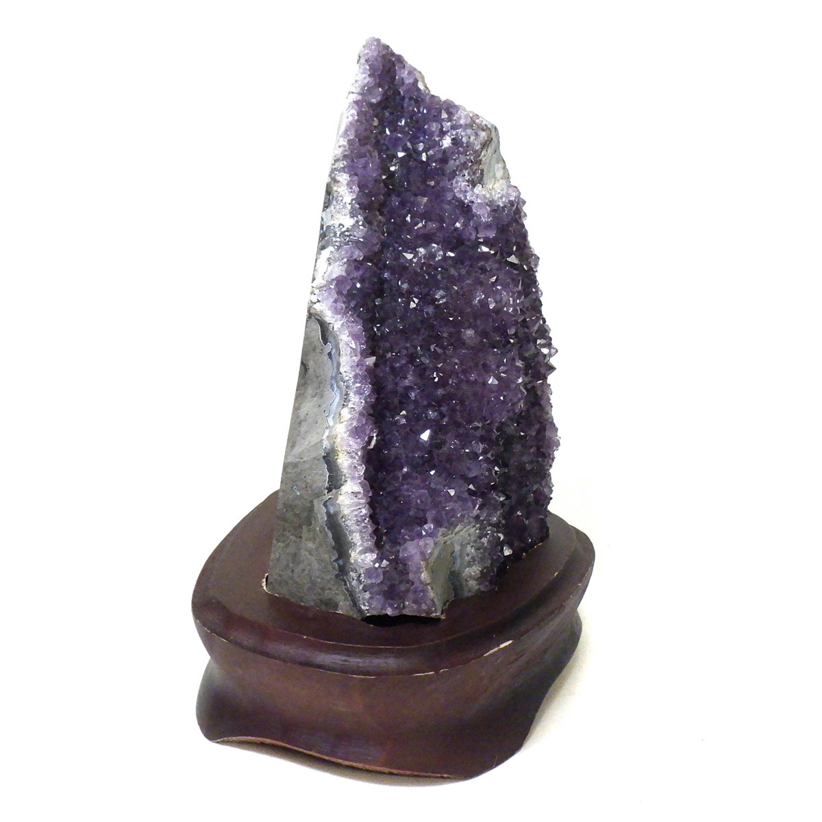 ウルグアイ産の高品質のアメジストクラスターです。結晶が細かくて深い紫色が特徴です。台から外しても安定感があり、色々な置き方が出来ます。