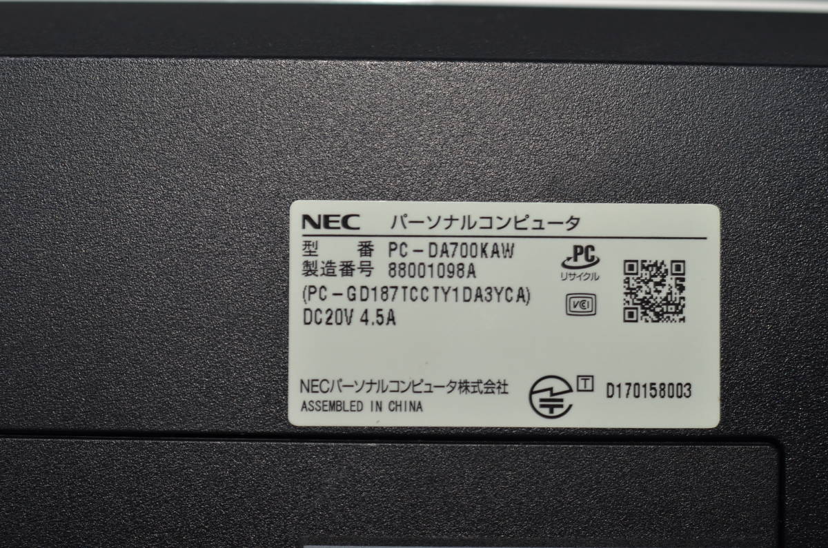中古良品一体型パソコン NEC DA700/(PC-DA700KAW)以下、仕様となります。