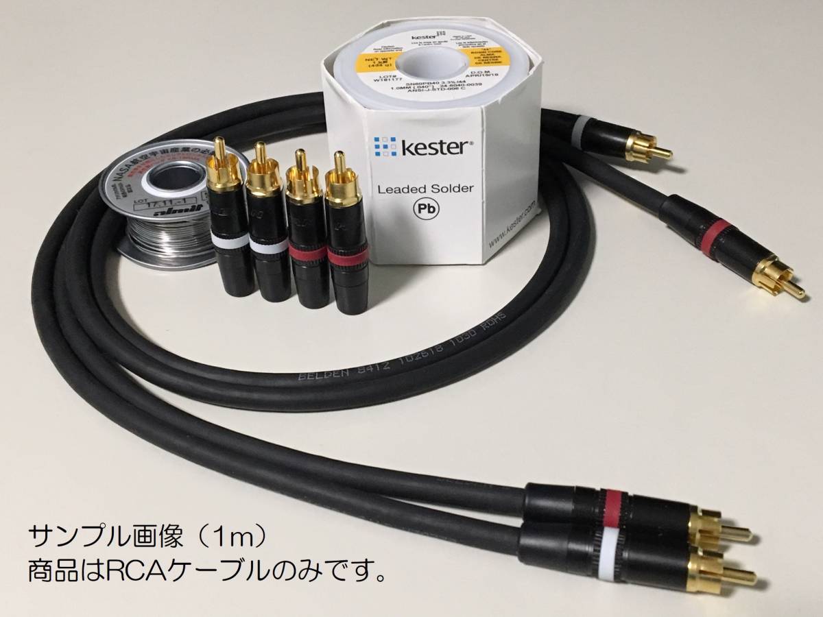 ケーブル色は 黒色 です。 ★ケーブル OFC(無酸素銅)線MOGAMI ( モガミ ) / 2549を採用。 ★プラグ リアンNYS-373 を採用。 接触部は金メッキで音質・耐久性・デザイン性に優れた高品質なプラグです。 ★ハンダ Kester44 もしくは 日本アルミットハンダKR-19RMA のどちらかをご指定ください。 ※ご指定なければKester44で製作いたします。 | ||||