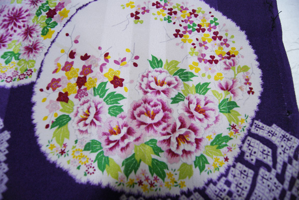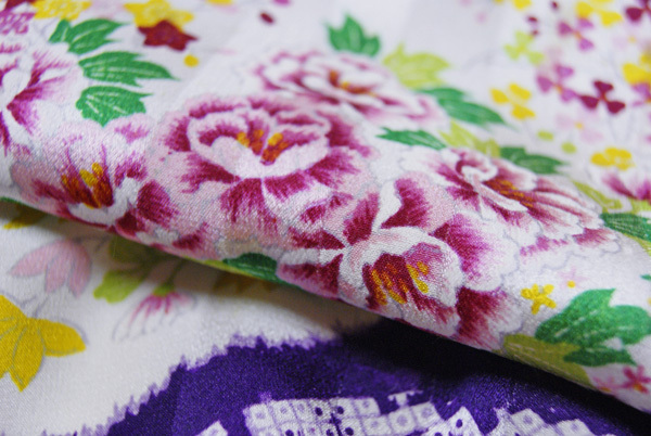 元は同じ着物であっても、生地を取る場所により柄の配置が異なります。ご了承下さい。