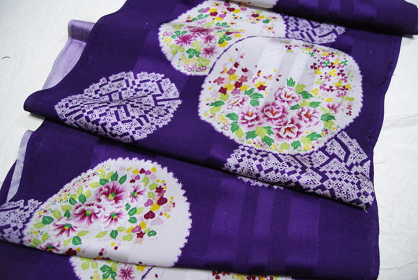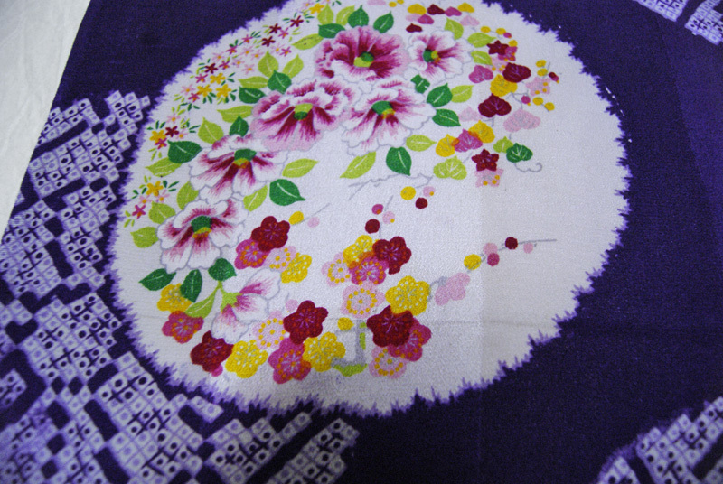 ひのき屋★古布 はぎれ 正絹 綸子/江戸紫 染鹿の子,花丸★リメイク素材★3004B