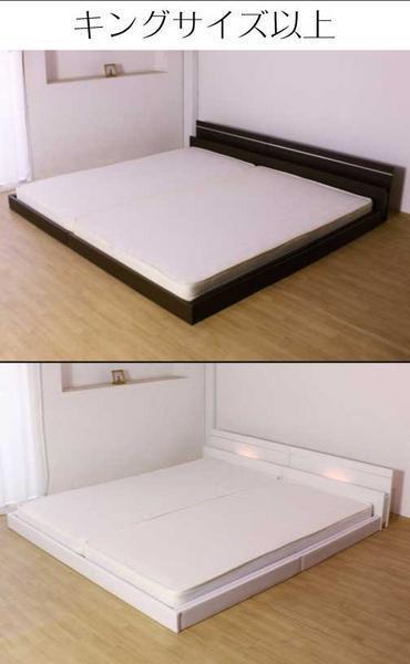 ■新品■棚 照明付ラインデザインフロアベッド ワイドキング240サイズ (セミダブル+セミダブル) 圧縮ロールポケット&ボンネルマットレス 付属 | ||