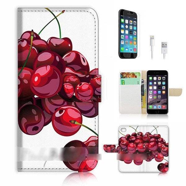 iPhone 6 6Sチェリー スマホケース 充電ケーブル フィルム付