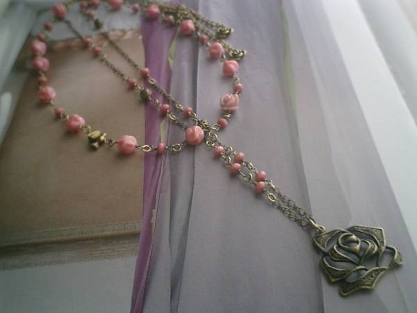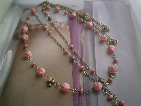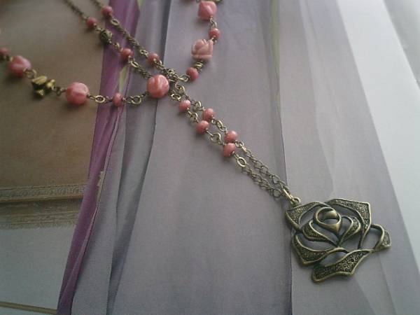秋色・デッサン・・シリーズです♪時々・少女気分で・・キュートなロードナイトのネックレス2点セットです♪薔薇や小鳥さんを合わせてアンティーク・モダンな表情です♪長い方のネックレスは6×3ミリのボタンカットのロードナイトや透かしチャームにトップは27ミリ位の薔薇のメタルチャームです♪長さは90センチ位で調節自由です♪短い方のネックレスはモーヴピンクの9ミリのデザインチェコにボタンカットのロードナイトや11ミリの薔薇のロードナイトや小鳥さんのチャームを合わて大人のロマンチックしています♪長さは全長62センチ位で調節自由です♪チョーカー風にされてもブレスにされても素敵です♪それぞれ単品でも出品しています♪♪お揃いのブレスレットやピアスも出品しています♪シンプルで合わせやすいデザインを考えて作りました♪ハンドメイドをご理解いただいてノーリターン、ノークレームでお願いします♪