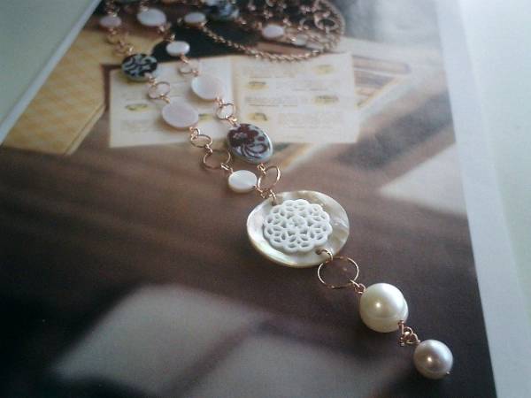 恋愛映画のレシピ・・シリーズです♪小さな貴婦人・・淡水パールとシェルのネックレスです♪ピンクシェルやお花模様のシェル、レース模様の透かしシェルなどデザイン違いのシェルに淡水パールやピンクゴールドのチェーンを合わせてキュートモダンな表情です♪ピンクシェルは10ミリのコインや16ミリのオーバル、15ミリ×25ミリのオーバルです♪トップはレース模様の透かしシェルを重ねた32ミリのシェルコインや8ミリ、12ミリのポテトの淡水パールです♪長さは全長88センチ位で調節自由です♪トップは8・5センチ位です♪♪お揃いのブレスレットやピアスも出品しています♪シンプルで飽きのこないいつまでも着けられるデザインを考えて作りました!ハンドメイドをご理解頂いてノークレーム、ノーリターンでお願いします