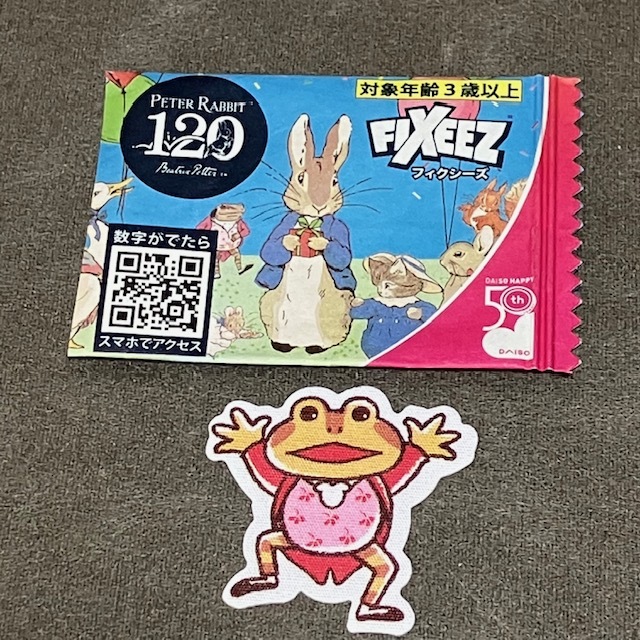 | ダイソーで頂いた ピーターラビット ワッペン です。 「フィクシーズ」は、 ペットボトルのリサイクル素材を原料とした、貼ってはがせるサステナブルなファッションワッペン。 シールとしてそのまま使うことができ、アイロンで布地につけることが出ます。 中身確認のため開封致しました。 | ||