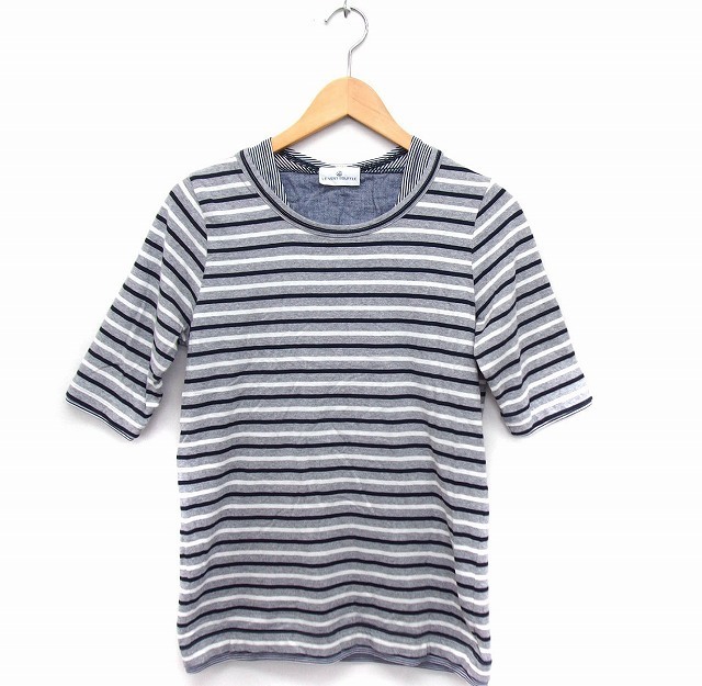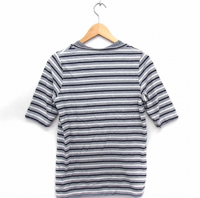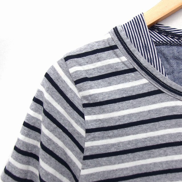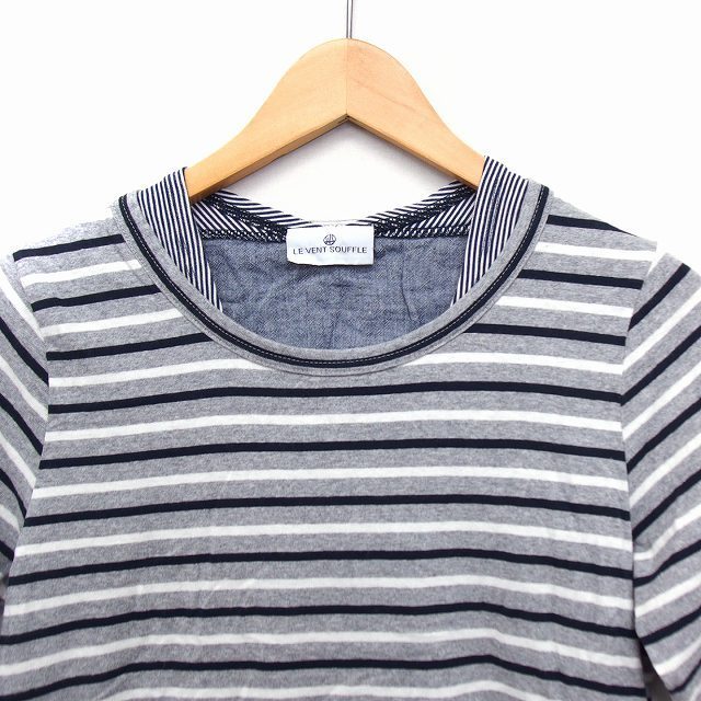 ルベント le vent SOUFFLE カットソー Tシャツ ボーダー 切替 丸首 五分袖 コットン 綿 グレー 灰 /FT27 レディース
